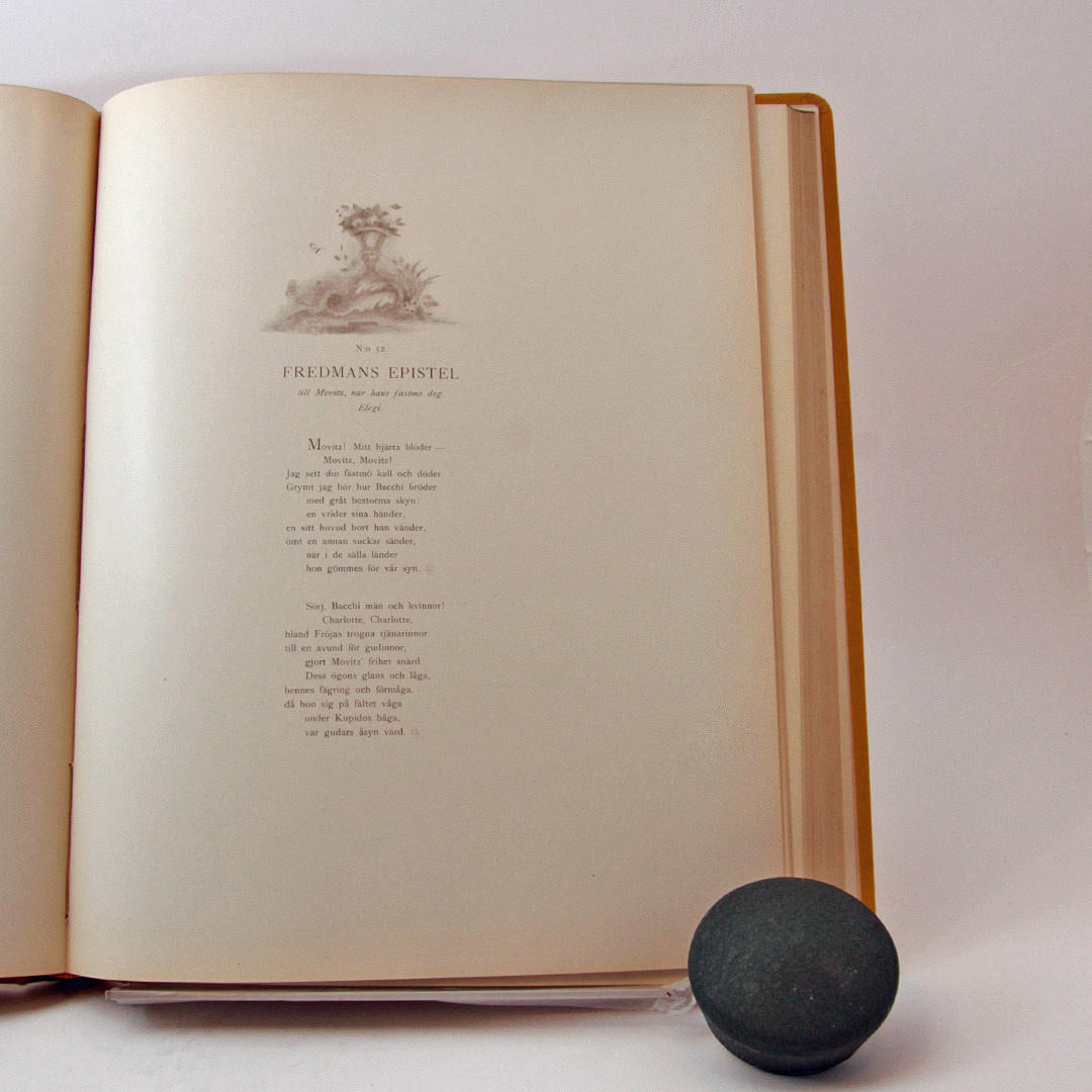 Albert Bonniers Verlag, Stockholm, 1915. Das mit Gelbgold verzierte Band des Verlags. (328) Seiten + Tafeln und (103) Seiten Notenanhang im Faksimile (nach der Ausgabe von 1790). Mit mehreren Vignetten im Text. Mit Bildern von Einar Nerman. 35 x 29 cm. Gewicht: 3900 Gramm.