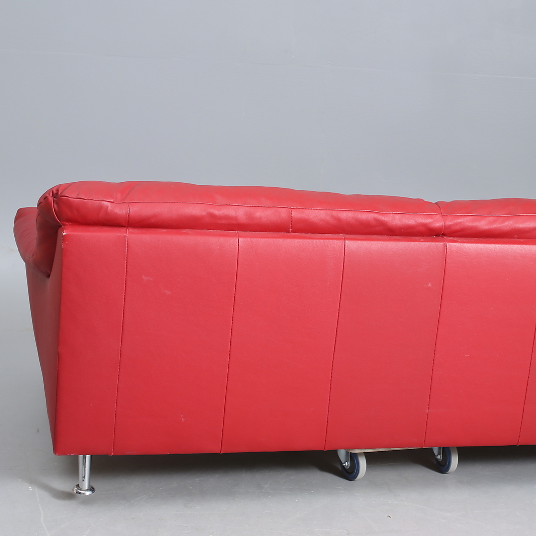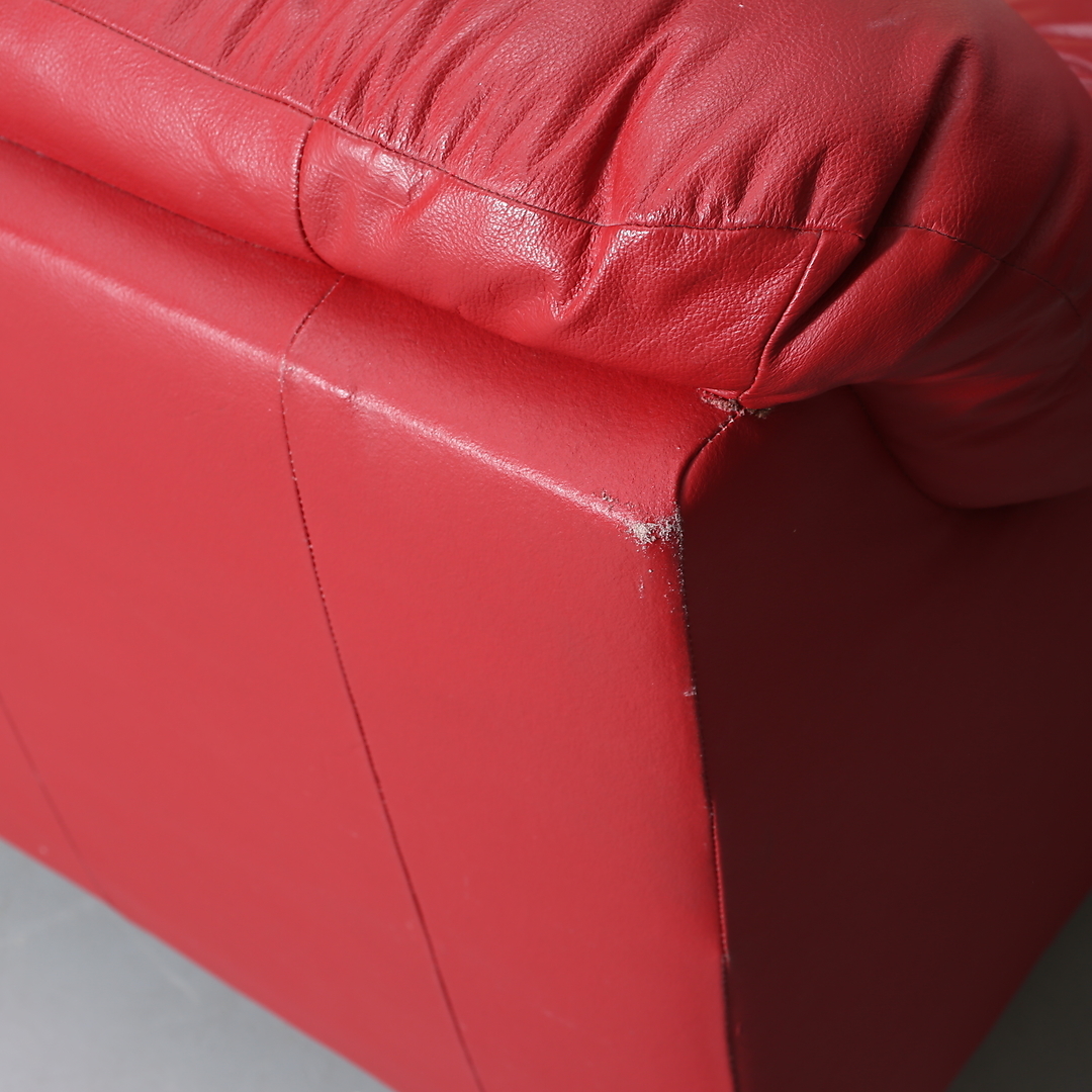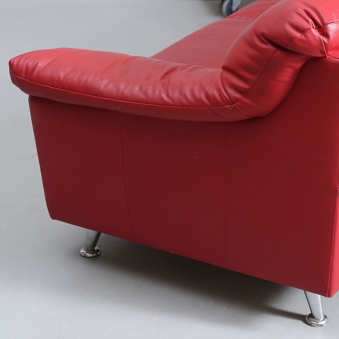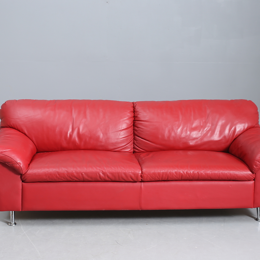 752290. LEDERSOFA, 3-Sitzer. Rotes Leder.