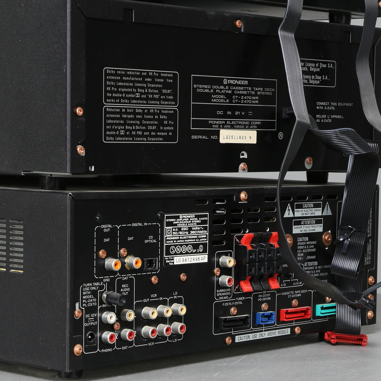 Stereoanlage bestehend aus Pioneer A-Z470 Stereoverstärker, CT-Z470WR Kassettendeck, F-Z570L Tuner und SP-Z570 EQ.