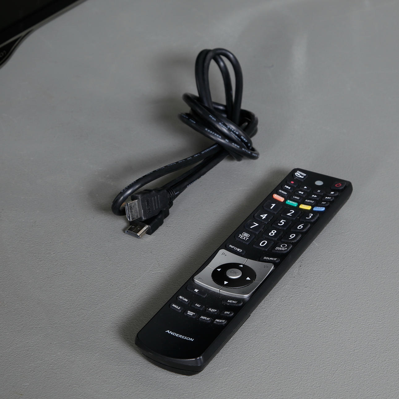 Fernbedienung und Kabel inklusive.