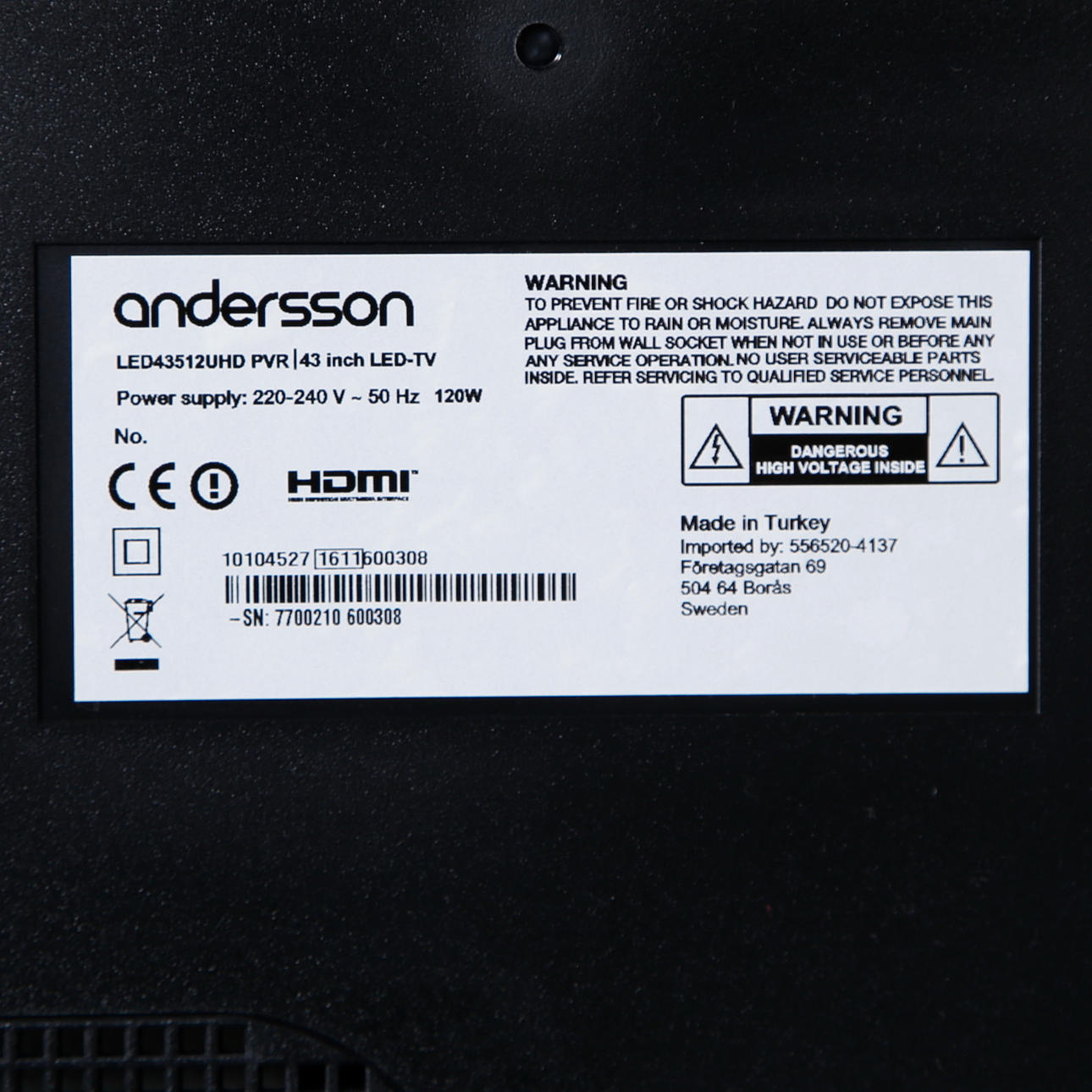 761005. Fernseher 43" LCD-Bildschirm, Andersson.