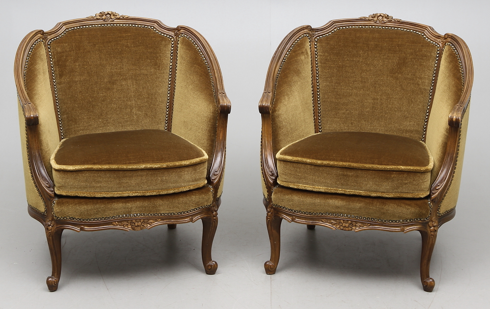 76281. ARMCHAIRS, ein Paar Mitte des 20. Jahrhunderts.