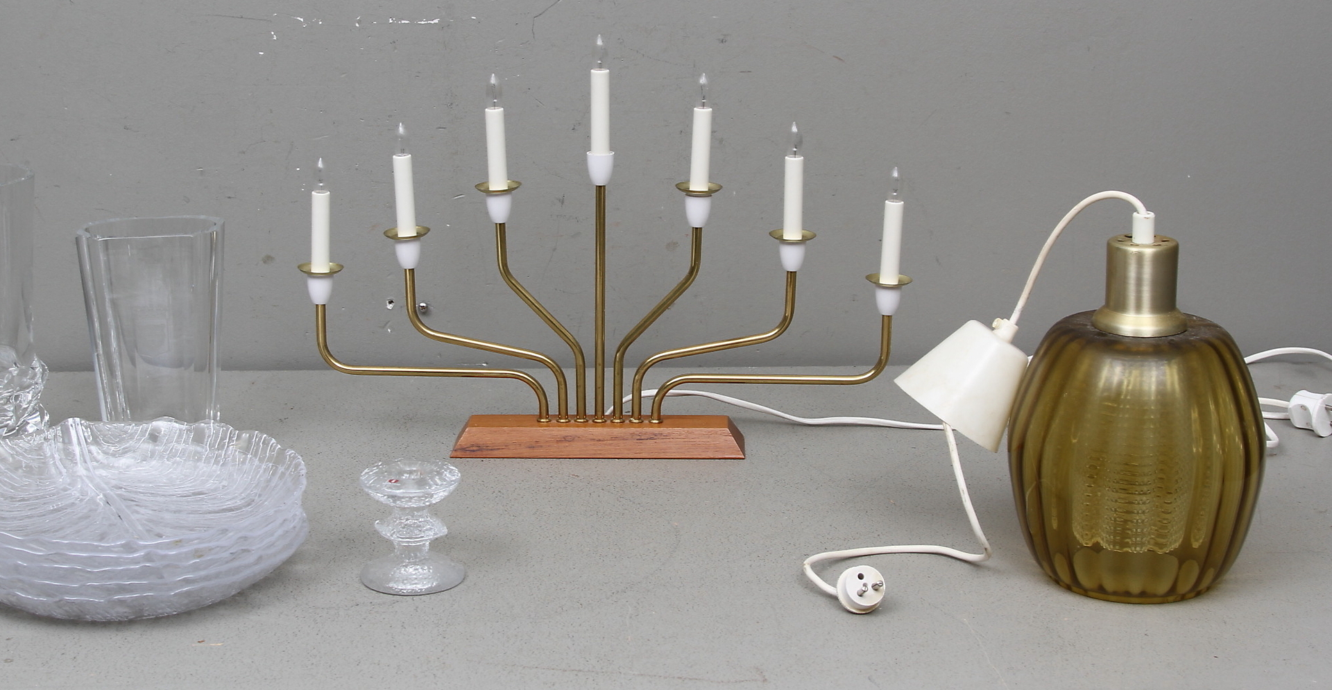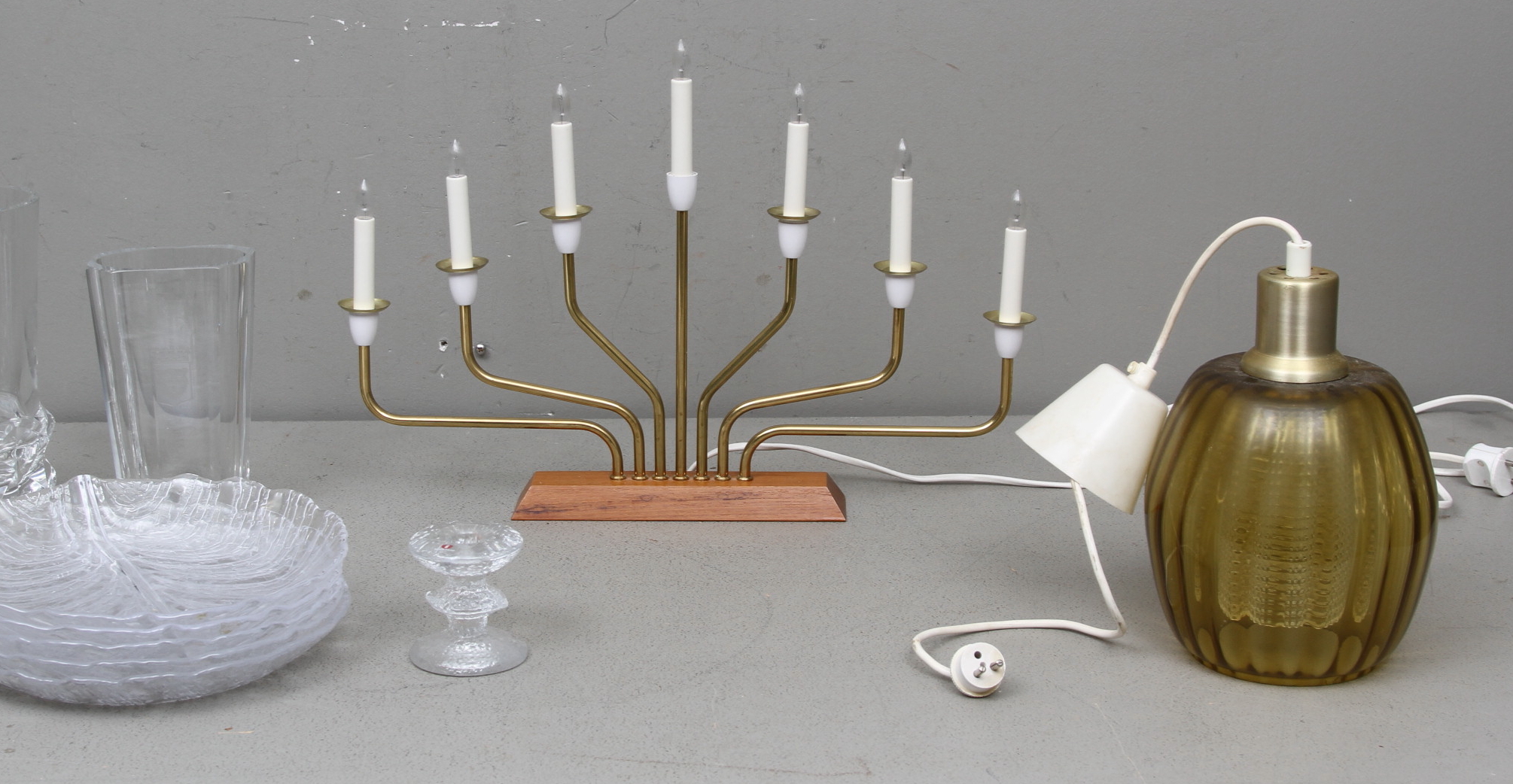 76287. GLASOBJEKTE, 1900er 16 Teile und Beleuchtung.