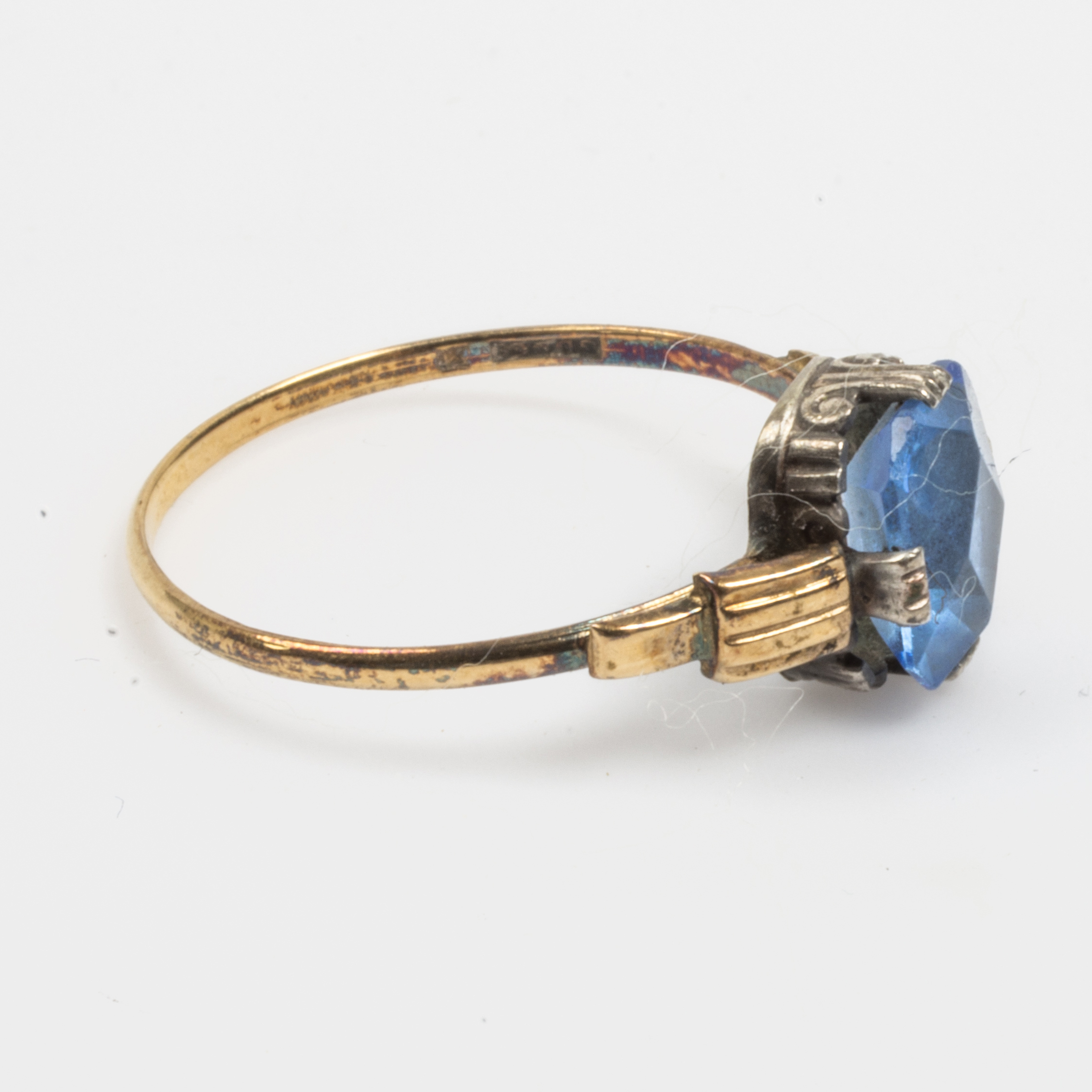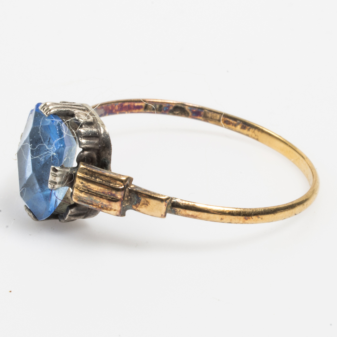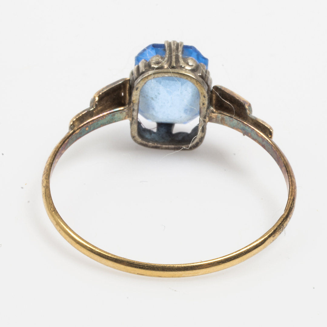 766205. RING, 18 Karat Gold mit blauem Stein.