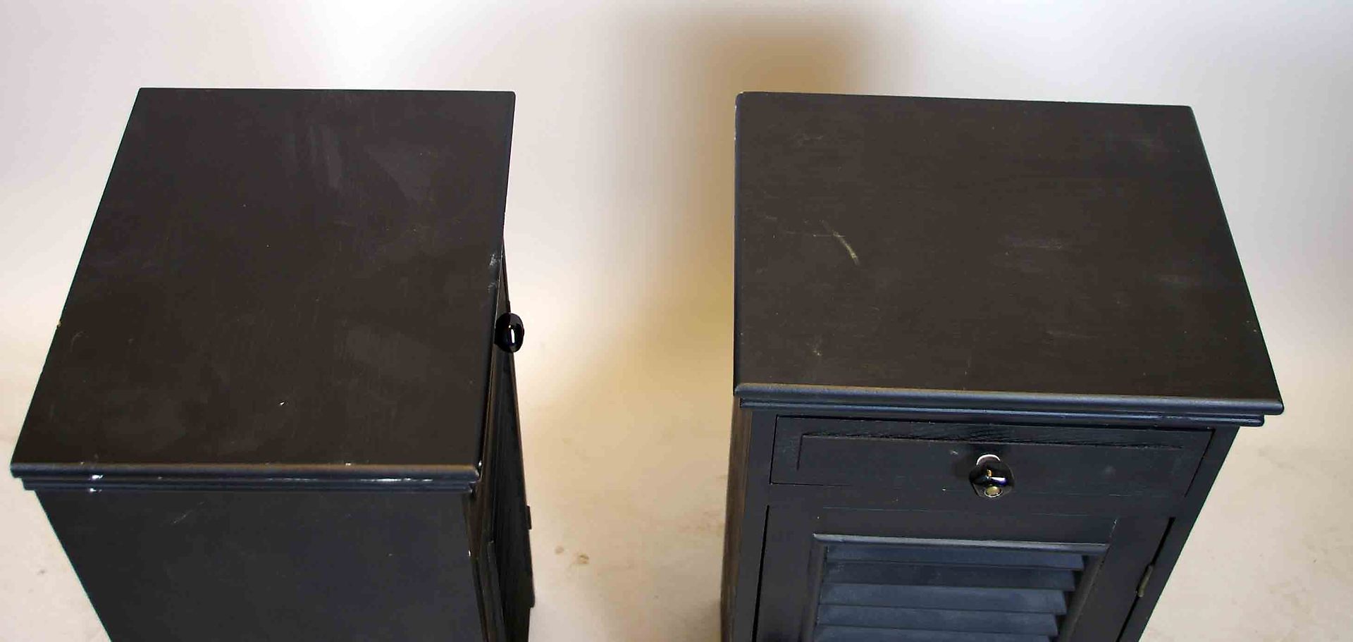 77640. 1 PAAR TOPFSCHRÄNKE, schwarz lackiert.