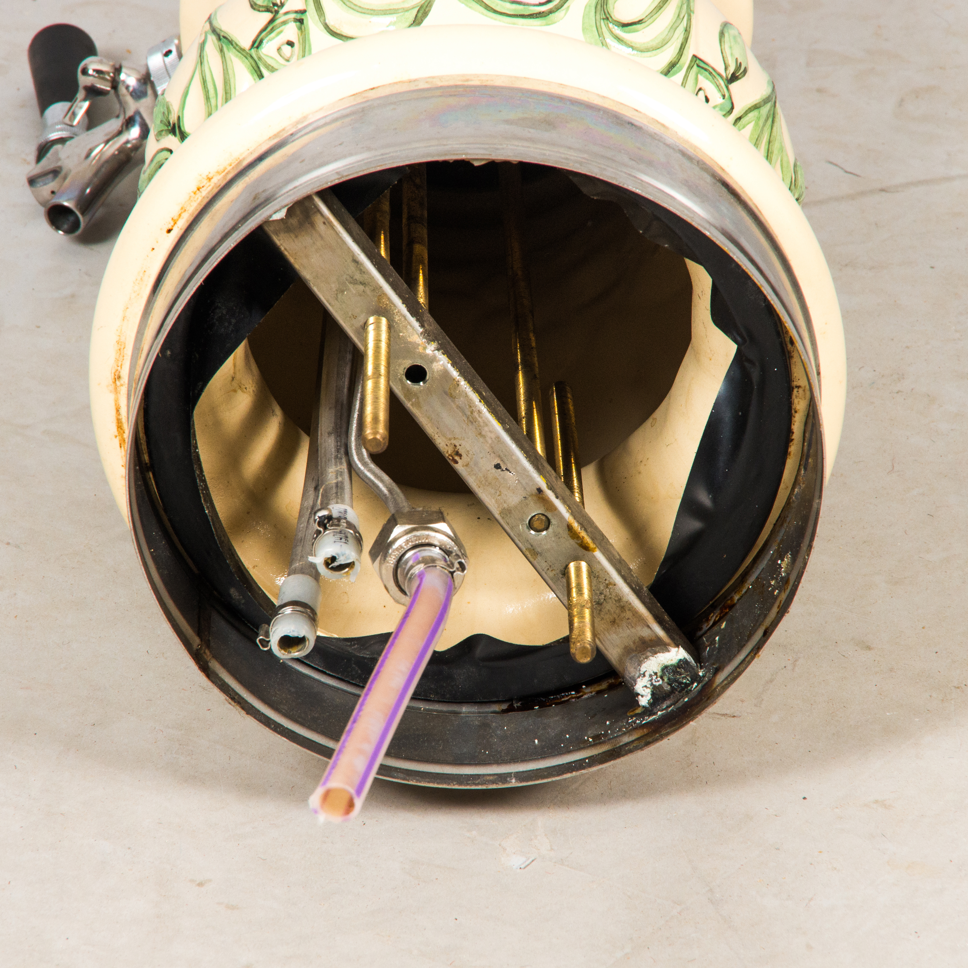 784664. HAHN, Majolika/Metall, 20. Jahrhundert.
