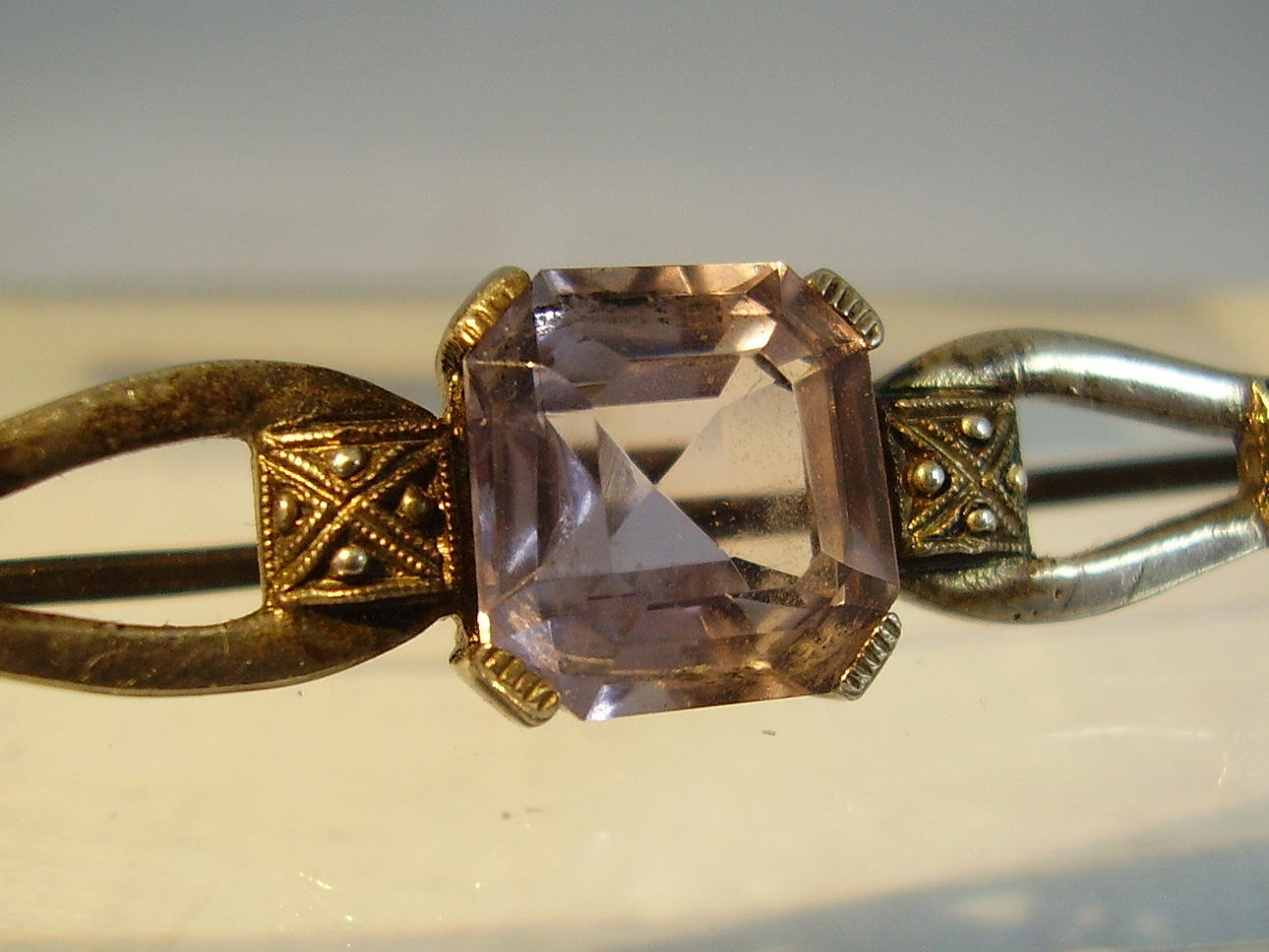Mit feiner Millegriffes-Oberfläche, mittig besetzt mit einem oktogonal facettierten fliederfarbenen Spinell von ca. 6 ct.