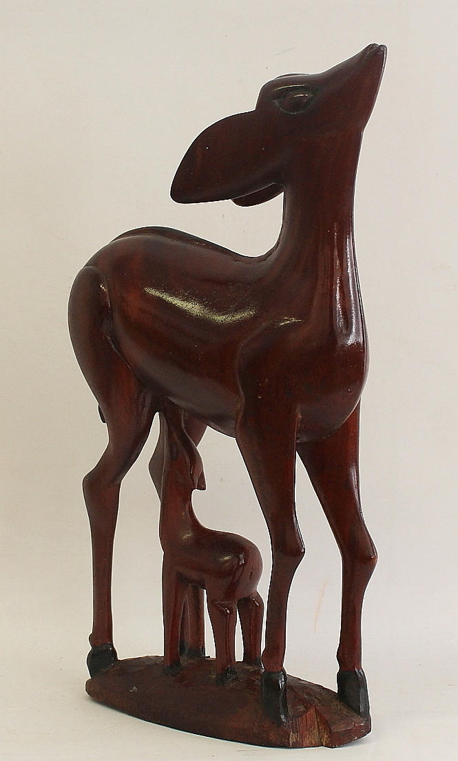 SKULPTUR, Holz, Reh mit Zicklein, Afrika.