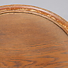 Tisch mit Regal und Glasplatte, Eiche Jugendstil, Höhe 65, Durchmesser 57 cm.
