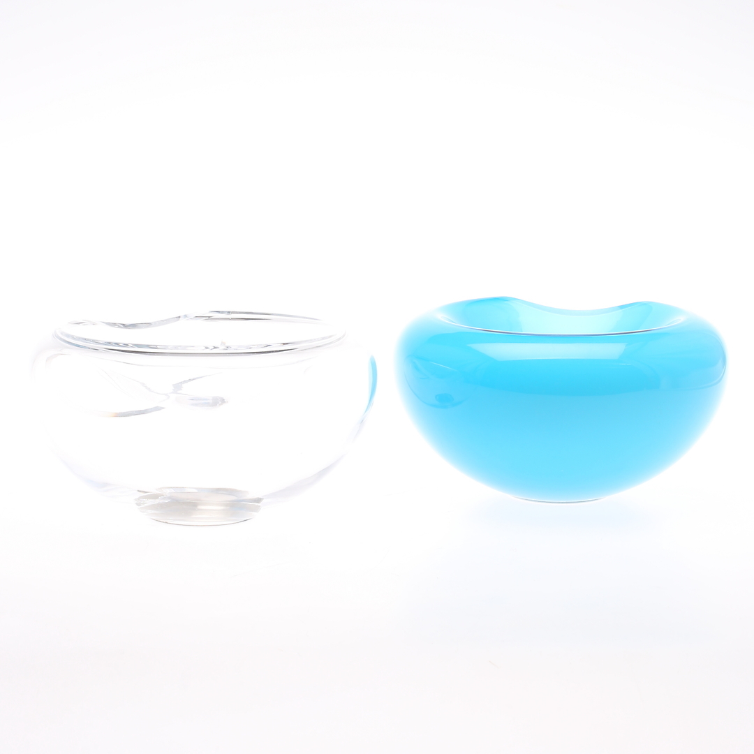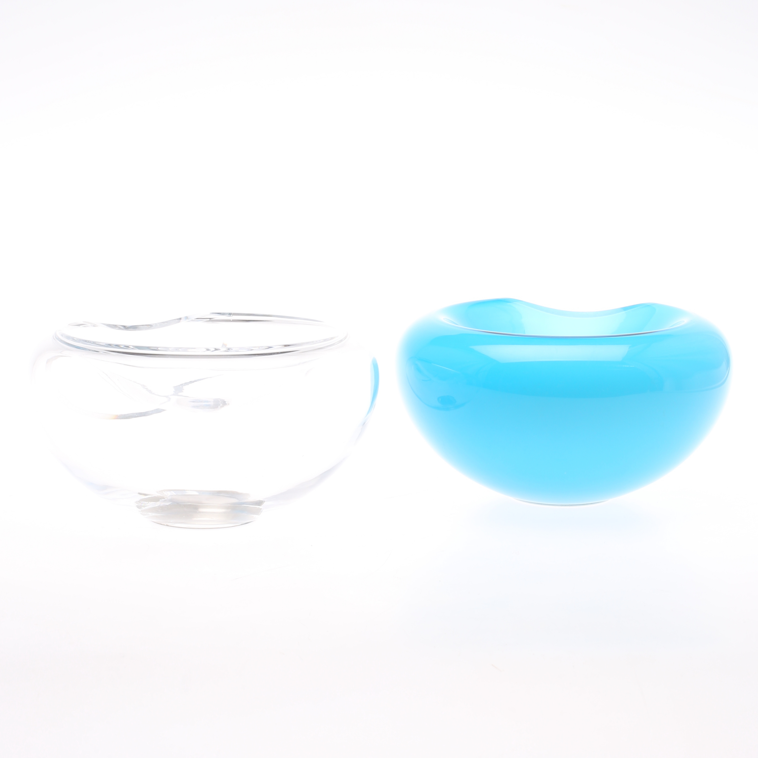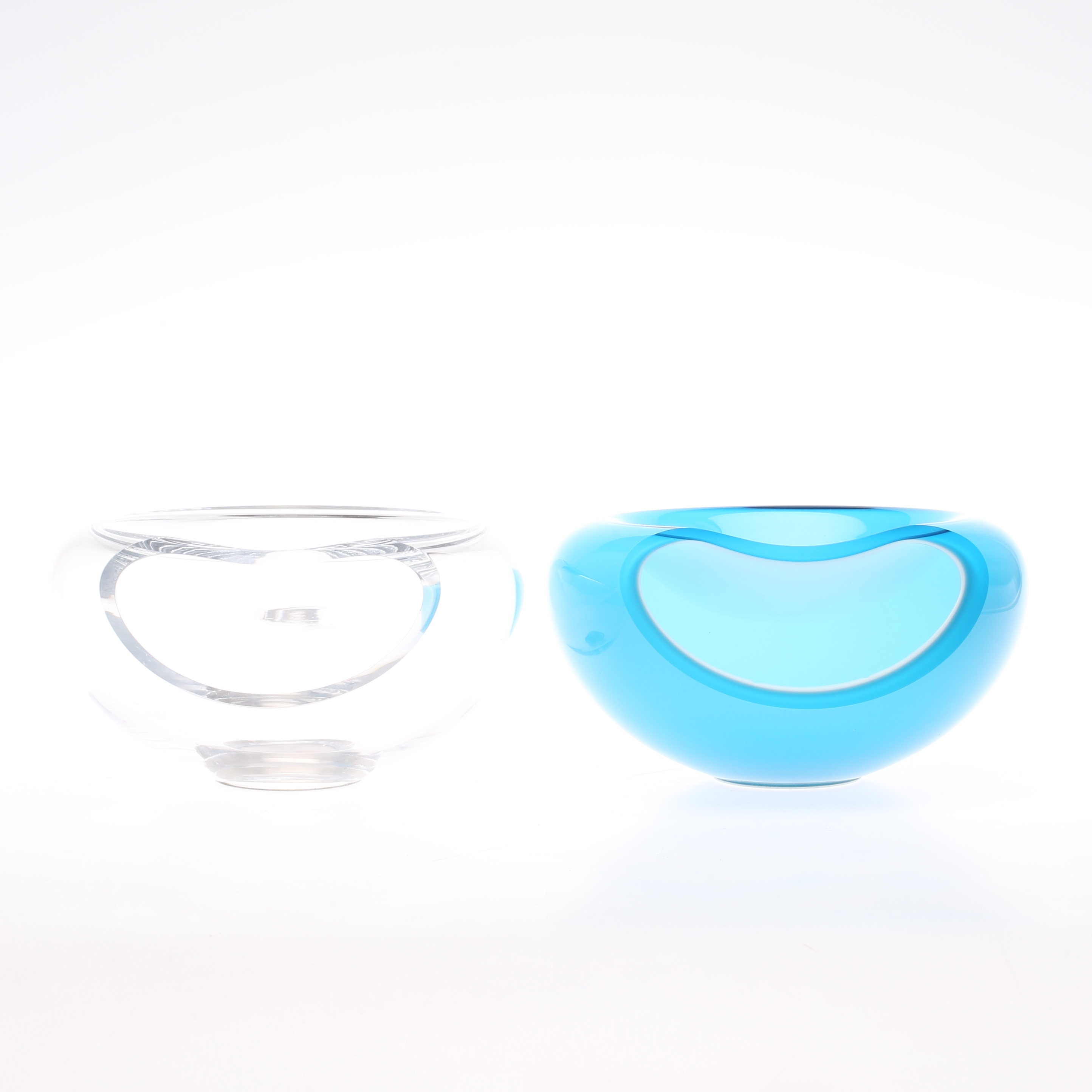 790447. EVA SOLO. Schalen, 2 Stück, "Smiley"-Glas, blau, klares Glas.