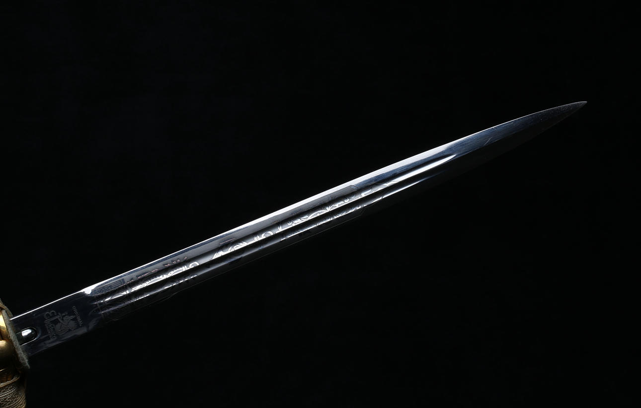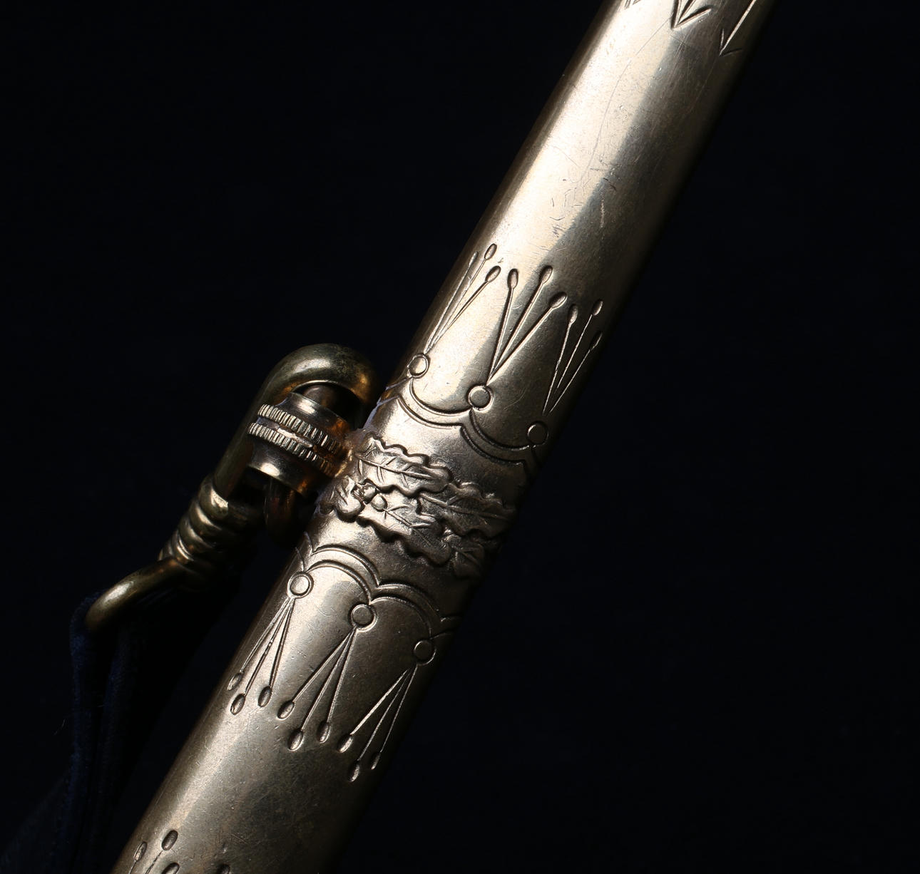 Gesamtlänge mit Schote ca. 42 cm. Die Länge der Klinge ca. 25 cm.