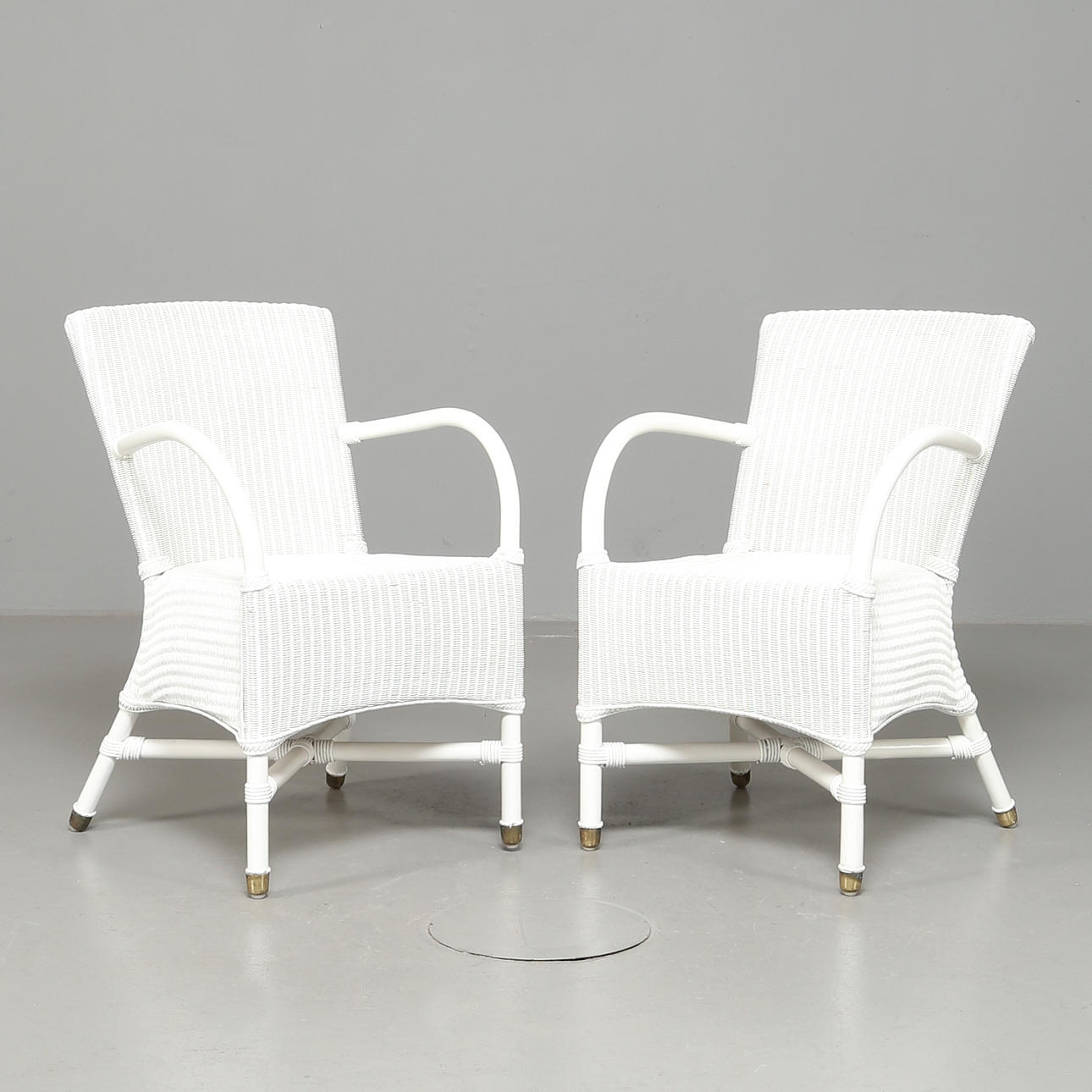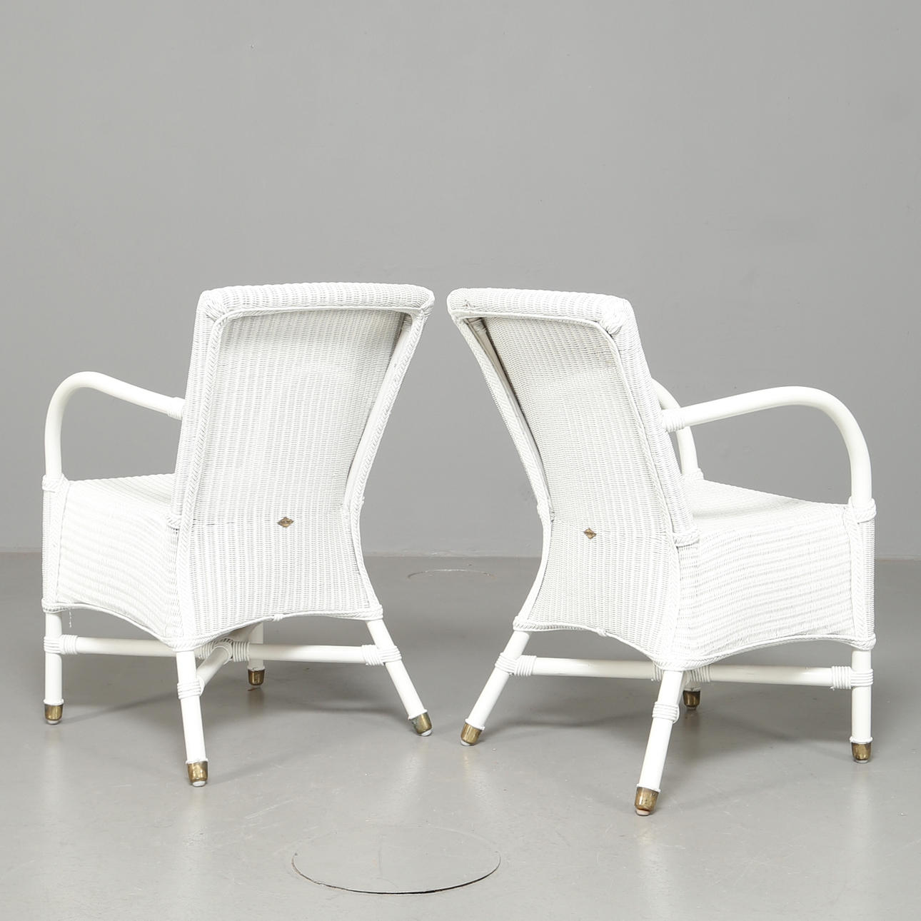Bambus und Rattan, weiß lackiert. Plakette markiert.