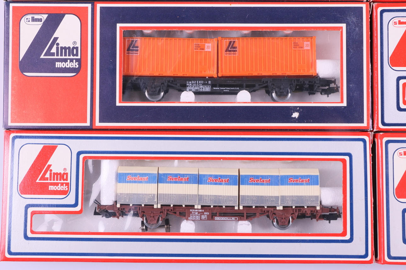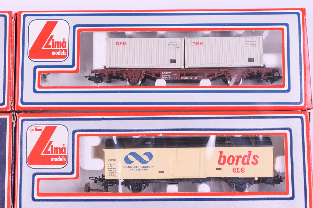 In Originalverpackung, H0 302833, Containerwagen Svelast, SJ-Lgjs, Märklin-Räder 302847, Containerwagen Svelast, SJ-Lgjs, Märklin-Räder 2 Stk. 2851, Containerwagen, DB, Streckenware, Märklin-Räder 302845, Containerwagen, DSB- Lgjs 303550, Geschlossener Kühlwagen, Findus, SJ 2 Stk. 303560, Geschlossener Güterwagen, KF BordsEve Länge 15,5-17 cm.