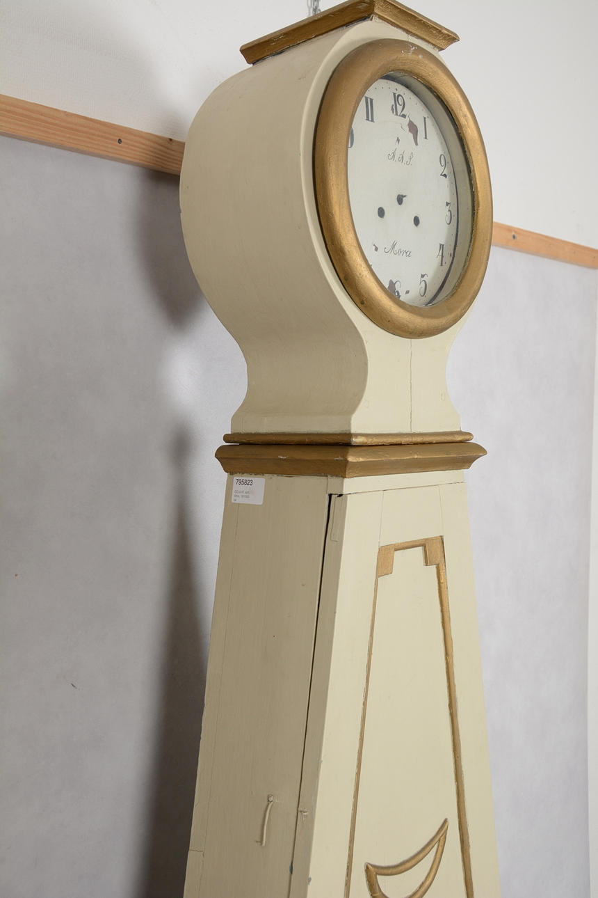 Neu gestrichen, renoviert und ergänzt. Risse und Zifferblatt mit Beschädigungen.