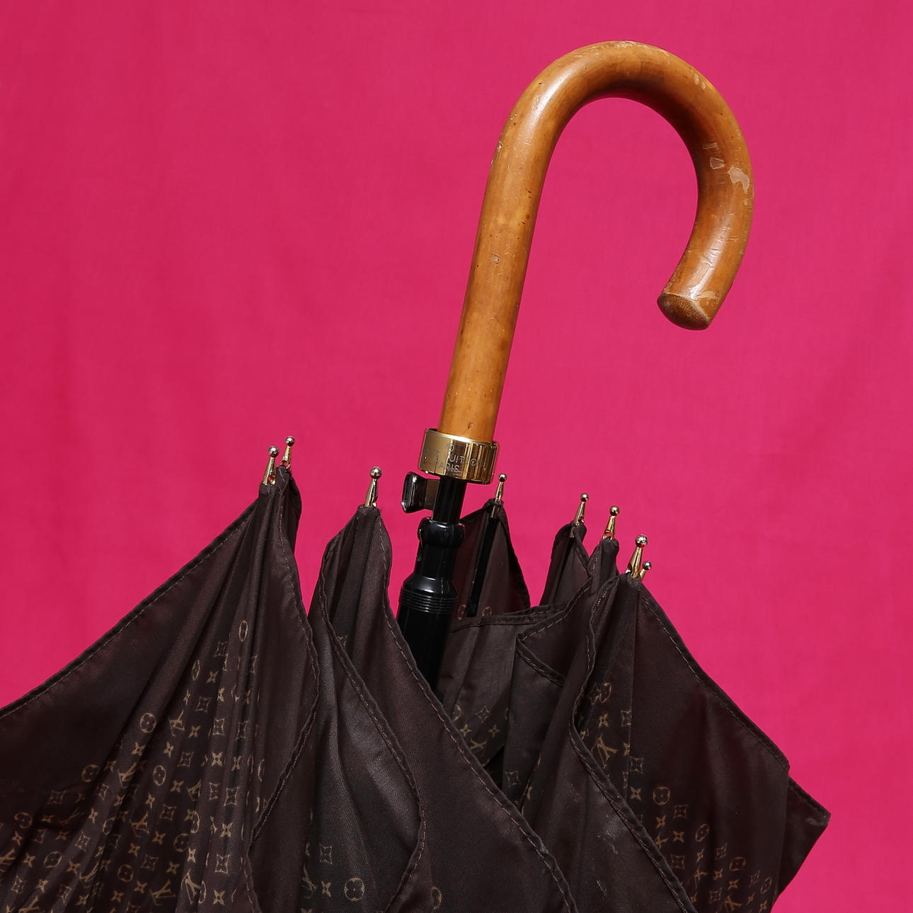 LOUIS VUITTON. Regenschirm, braun mit Monogrammmuster.