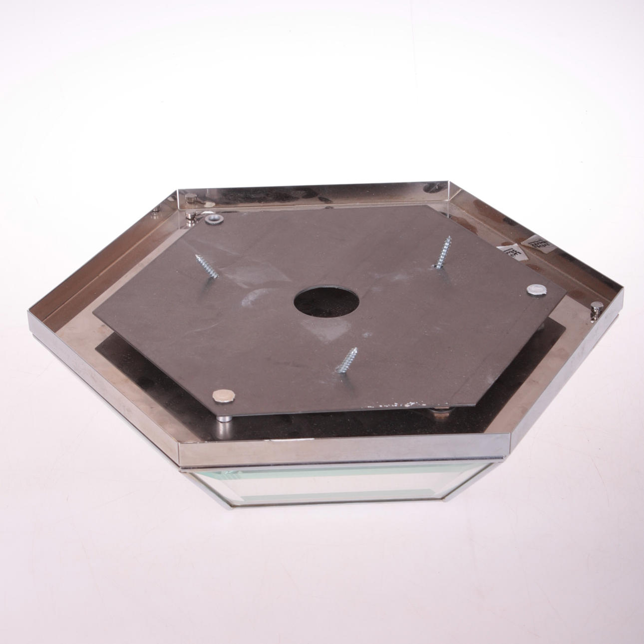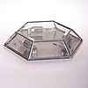 Oberfläche aus Metall und facettiertem Glas und Spiegel.