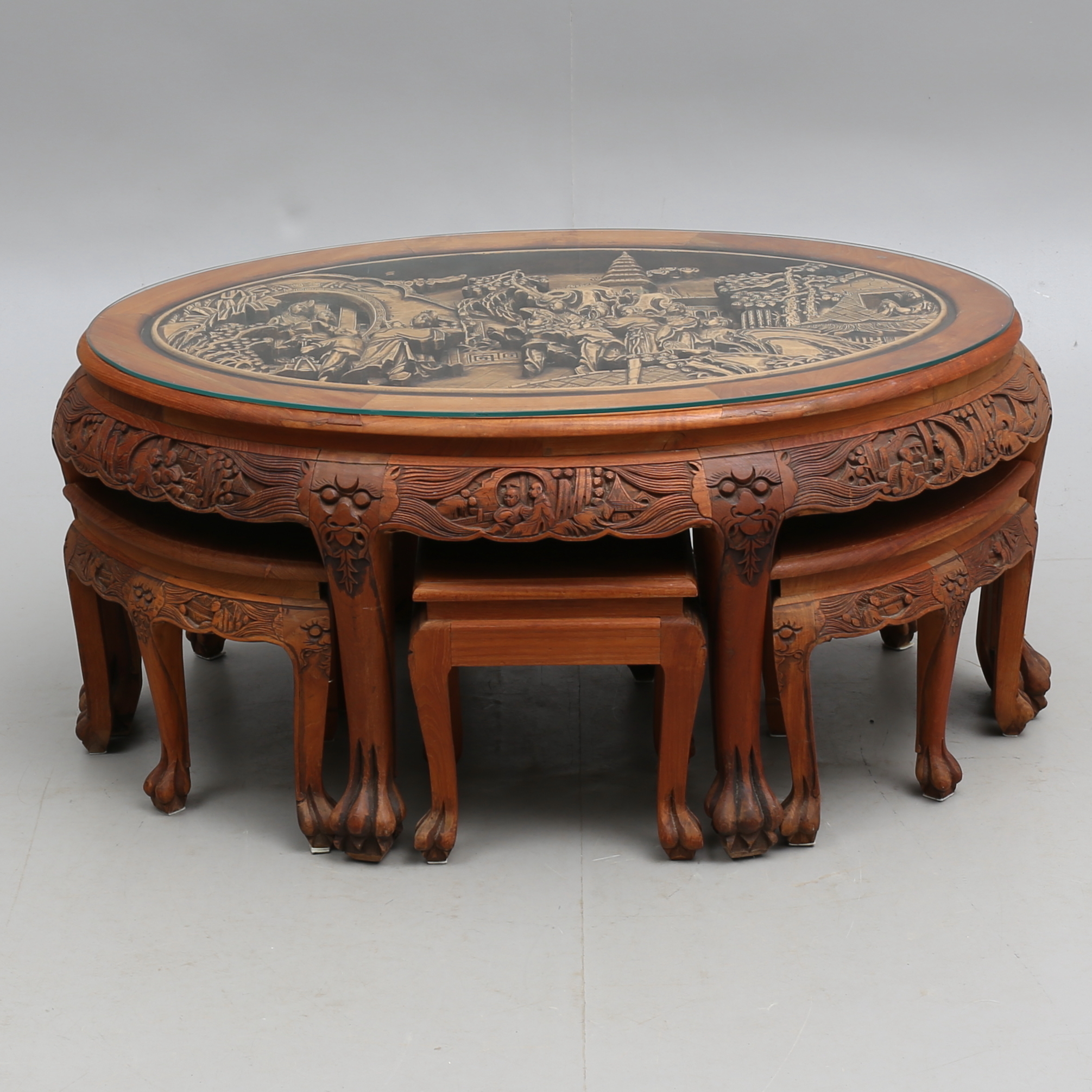 802738. COUCHTISCH, mit Hockern, 7-teilig, orientalischer Stil.