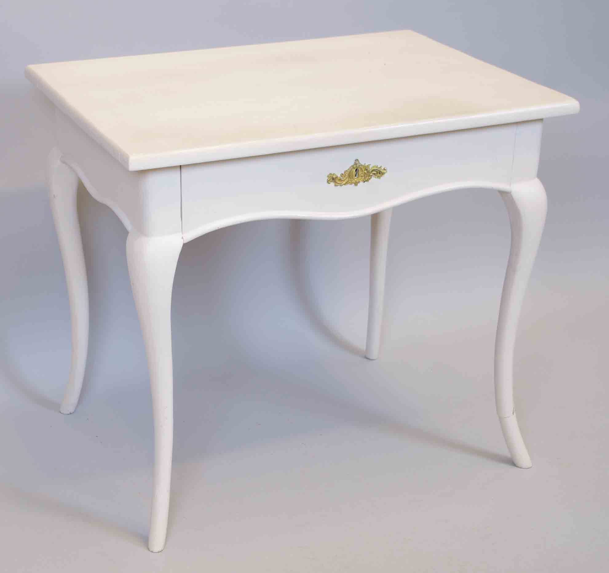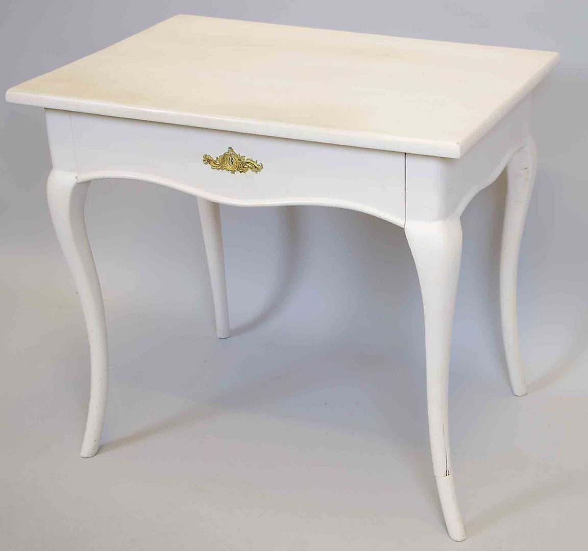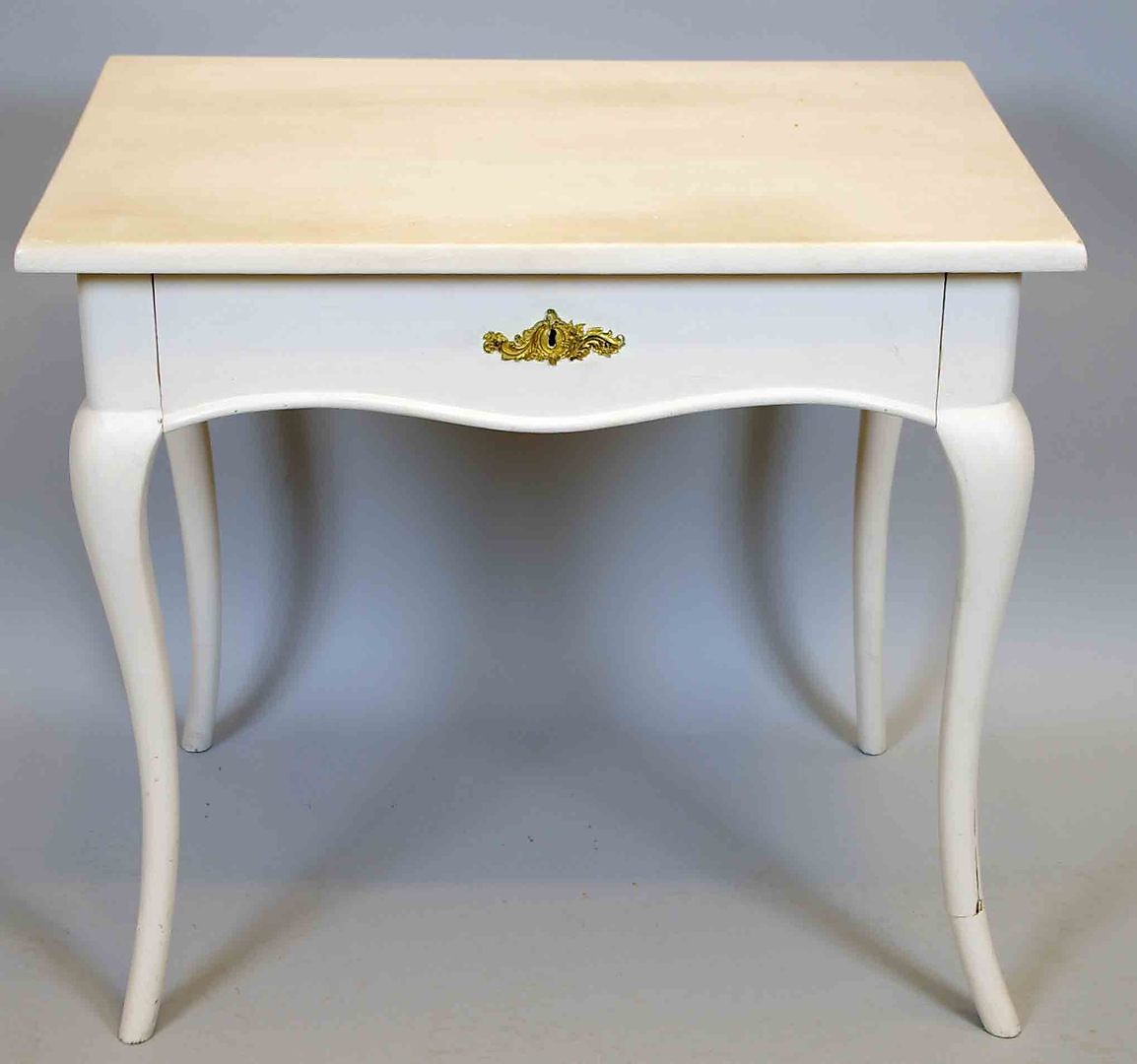 80385. TISCH MIT KASTEN, weiß lackiert, Rokoko-Stil.