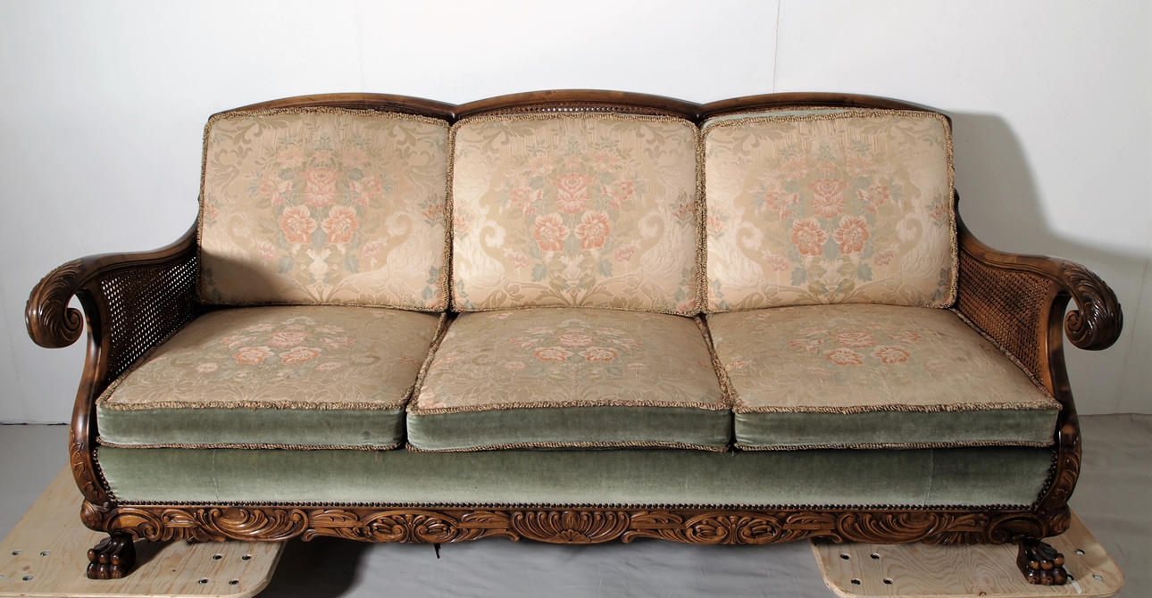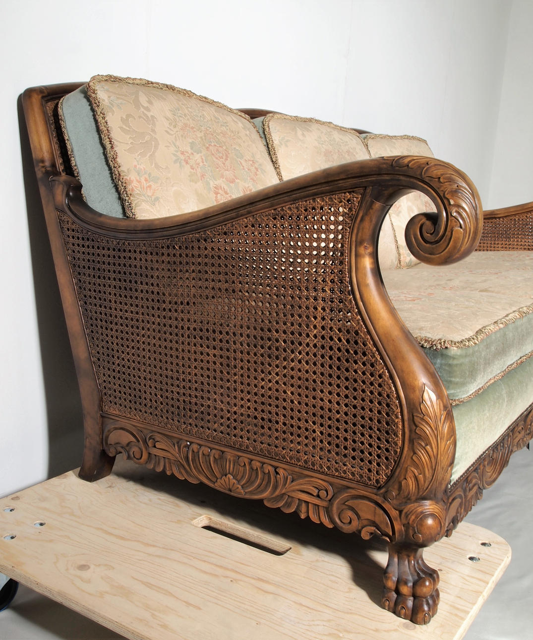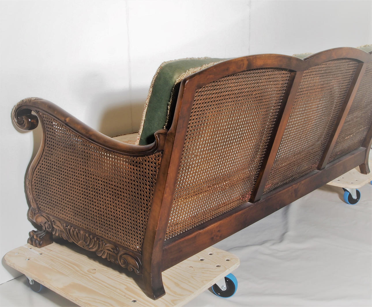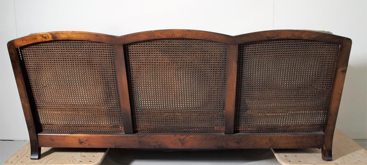 Rahmen mit Rattan an den Seiten und hinten Länge ca. 195 cm, Höhe 75 cm, Tiefe ca. 90 cm.