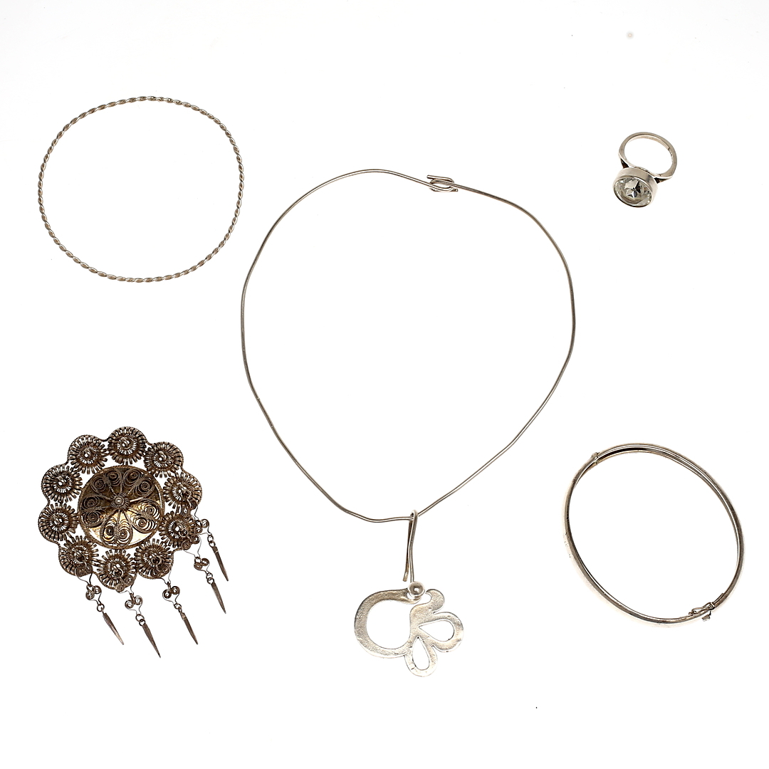 810104. SCHMUCK, 5 Stück, Silber, Gewicht 50 Gramm.