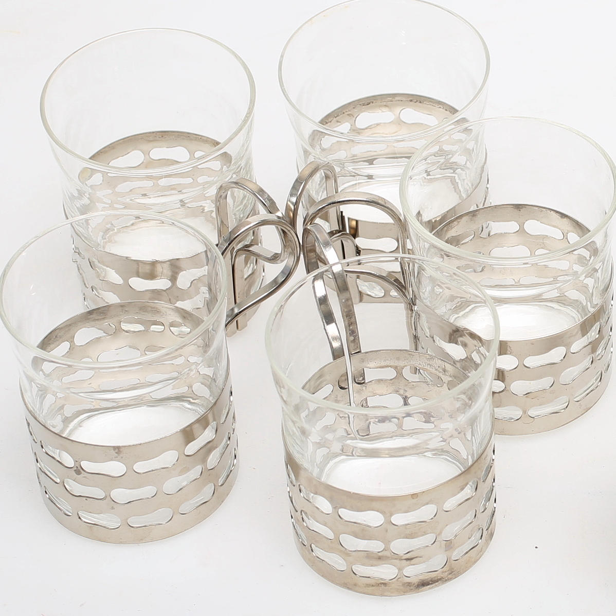 10 Kaffee-/Tee-/Glühgläser, mit Halter.