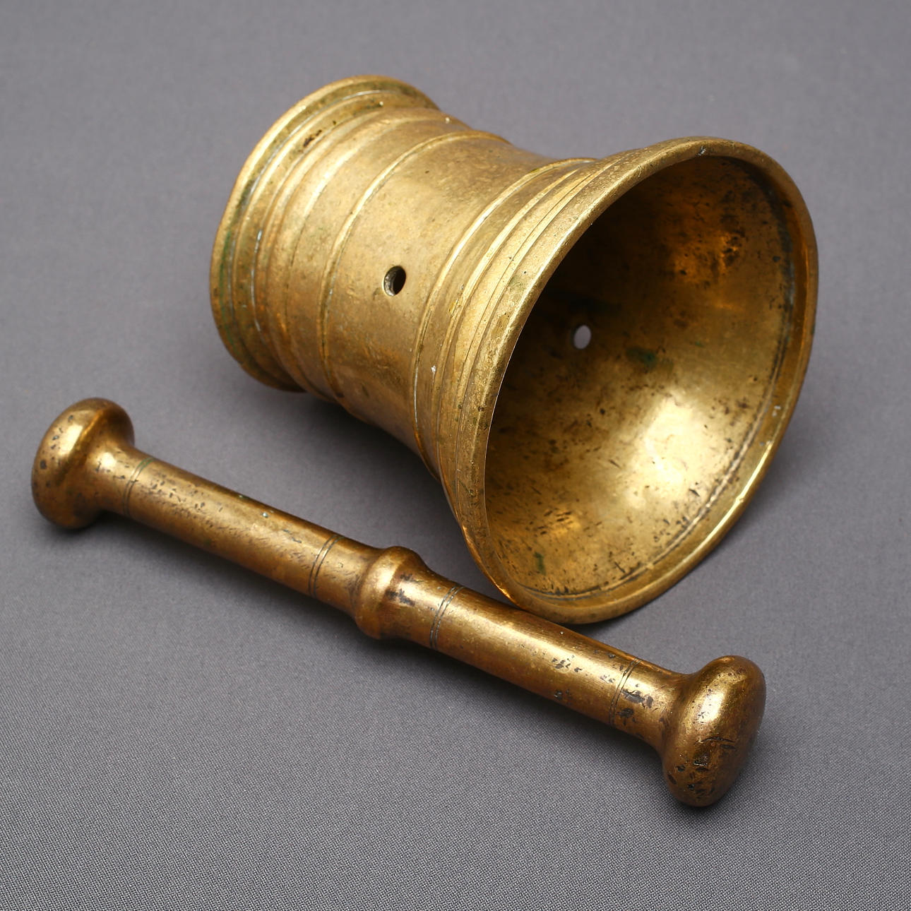 812795. MÖRSER mit Stößel, Messing, 18. Jahrhundert.