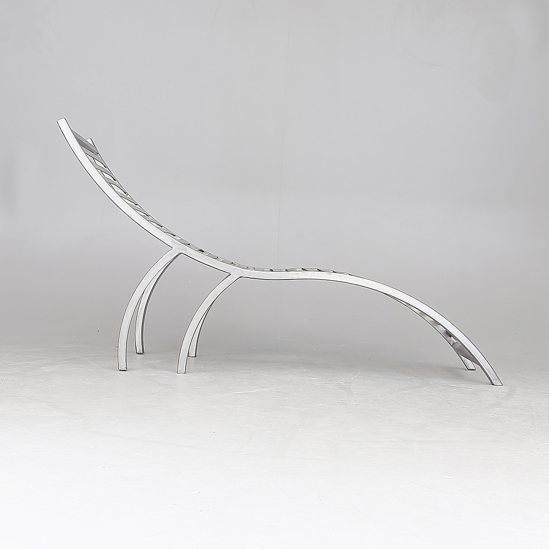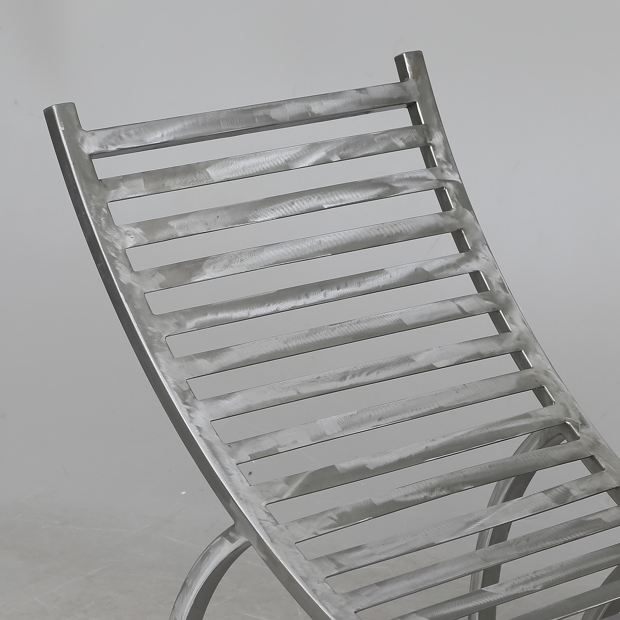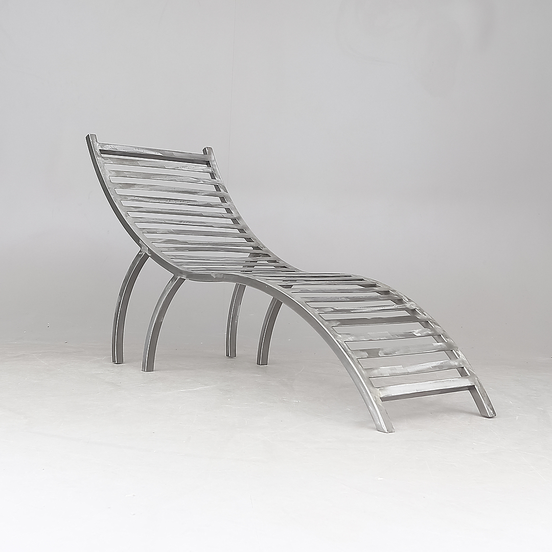 813022. RECYCLING-STUHL, Metall, geschliffener Stahl.