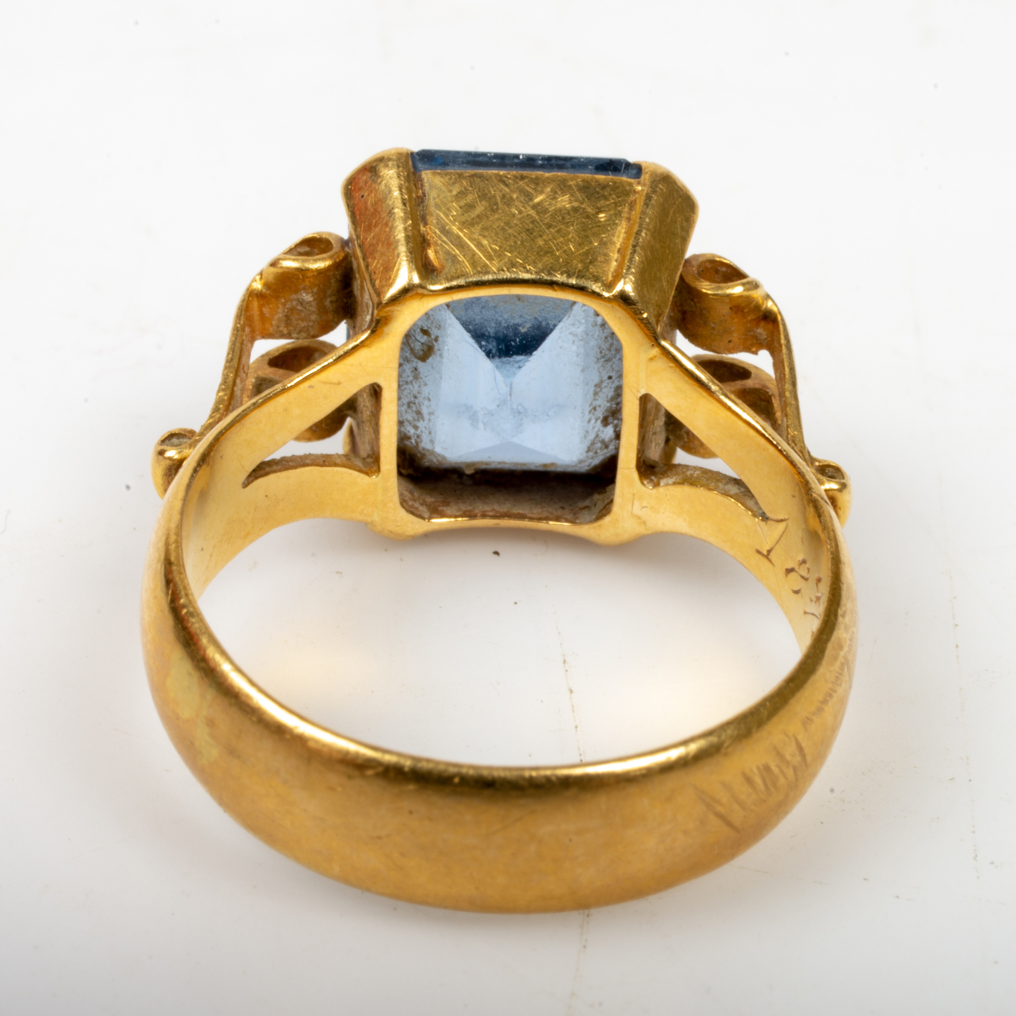 819550. RING, 18 Karat Gold mit blauem Stein.