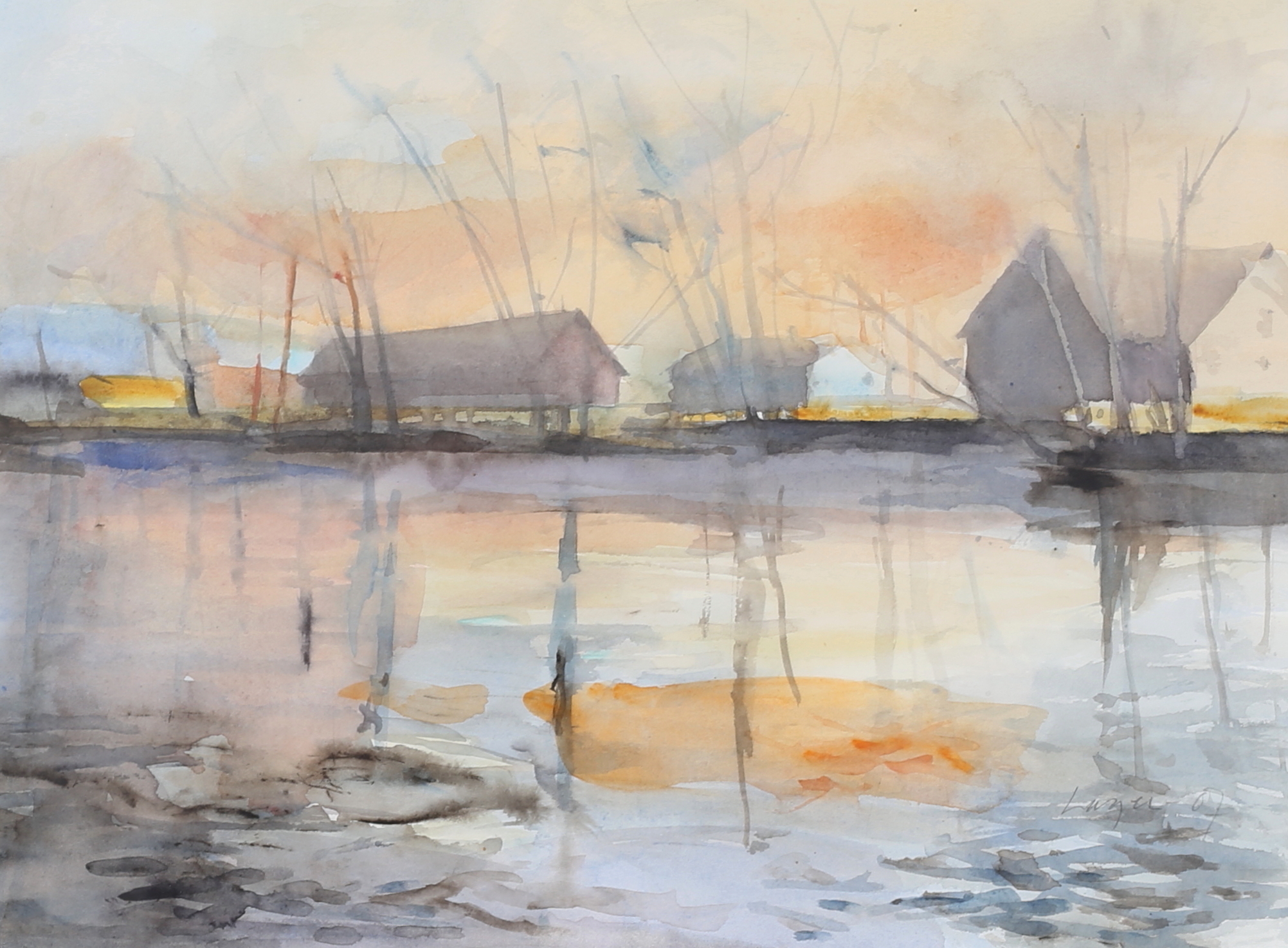 820538. HÅKAN LAGER. "Am Fluss". Aquarell, signiert.