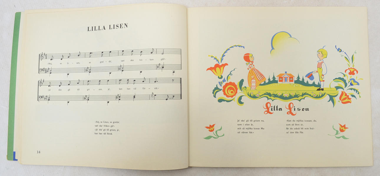 30, 2 S. Illustriert. Mit Musikpartitur. text auf schwedisch. Fritzes Buchverlag. 1947.