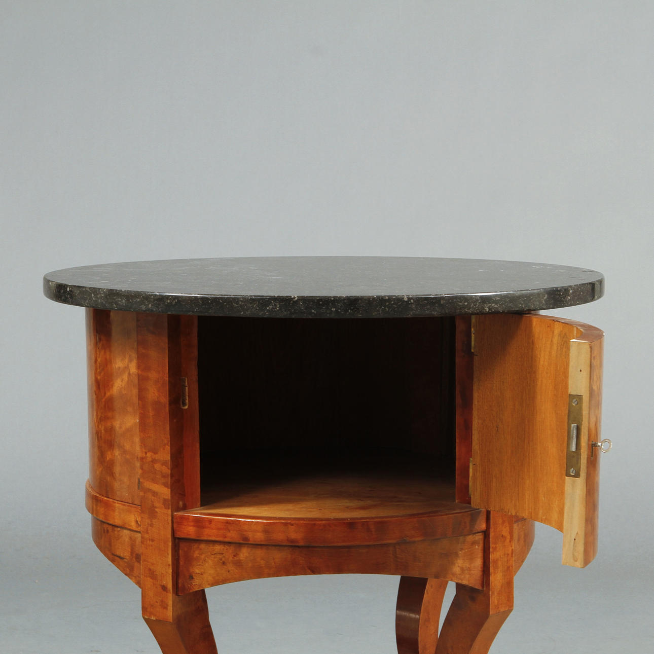 Birke, Steinplatte, Durchmesser 60 cm, Höhe 64 cm.