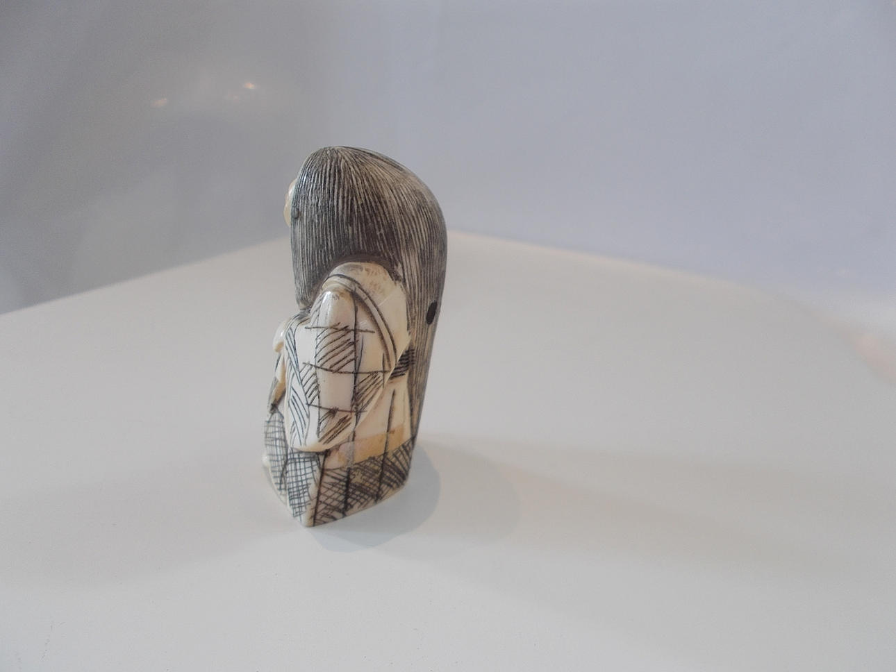 Netsuke, Motiv Mann mit drehbarem Kopf, etwa 5 x 3,5 x 2,5 cm, Japan, 19. Jahrhundert.