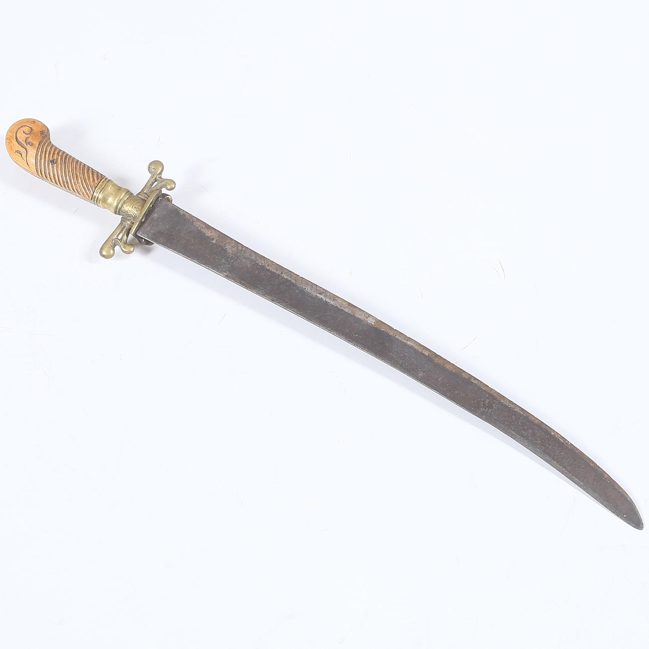 Doppelt beschichteter Kurzsäbel, verzierter Griff und Schälstange aus Messing.