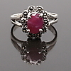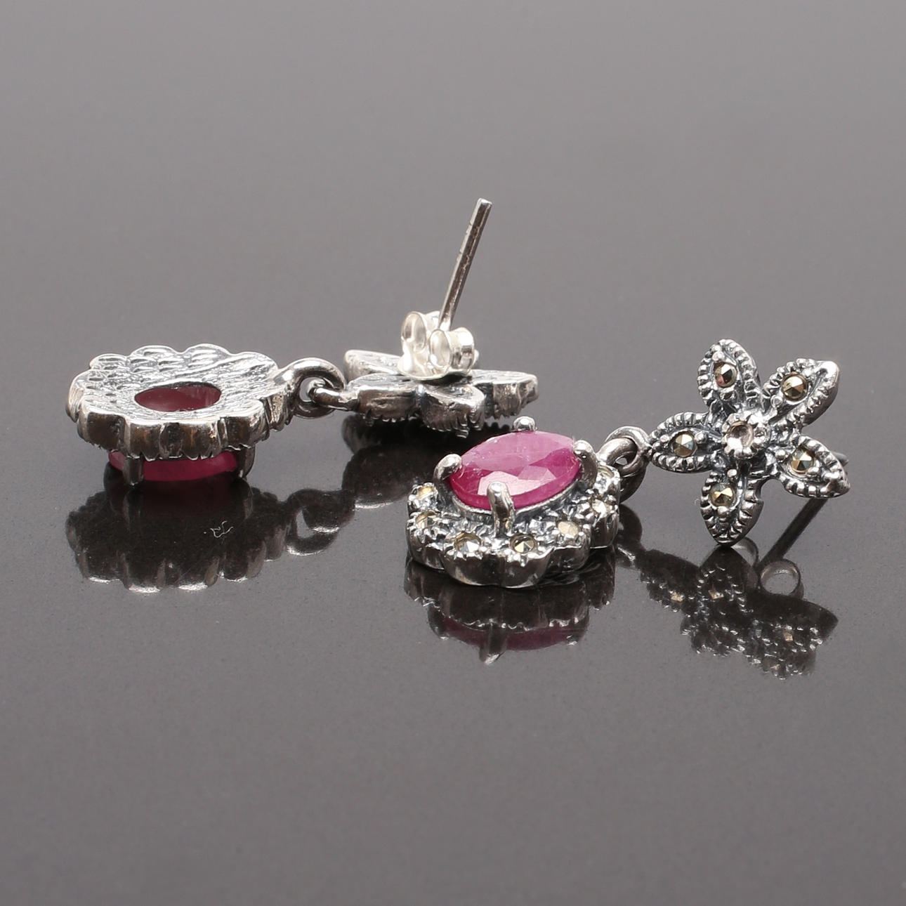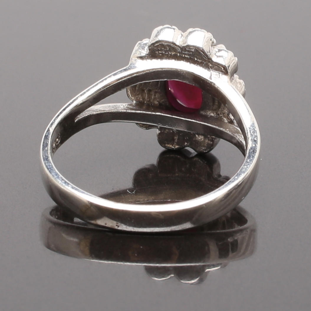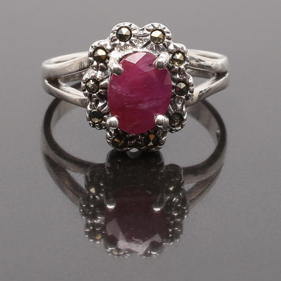 SCHMUCKSET, Silber, Perlen, Markasit und rote Steine.