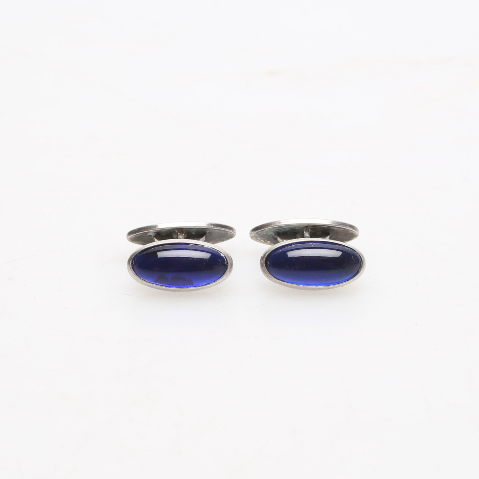 833570. MANSCHETTENKNÖPFE, ein Paar, Silber mit blauem Stein.
