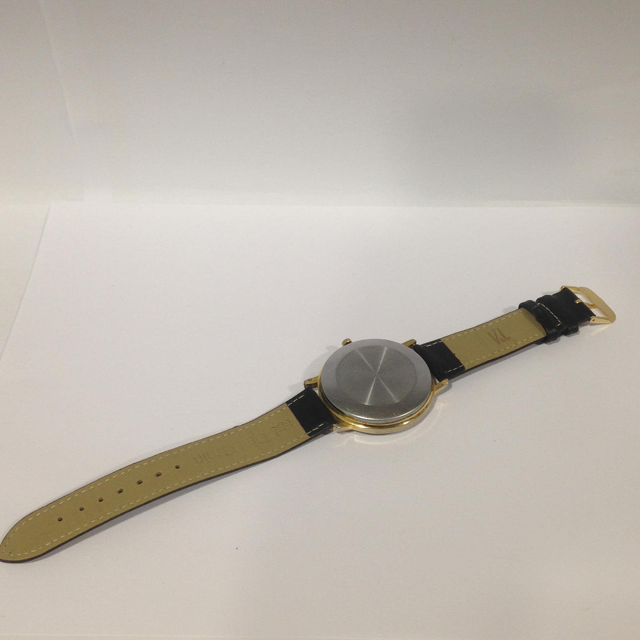 Diese Armbanduhr ist aus Edelstahl und vergoldet.