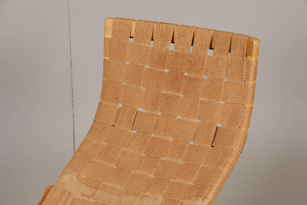 Sessel mit Gestell aus Bugholz, mit Sattelgurt gepolstert, gebrandmarkt Rückenlehnenhöhe 94.