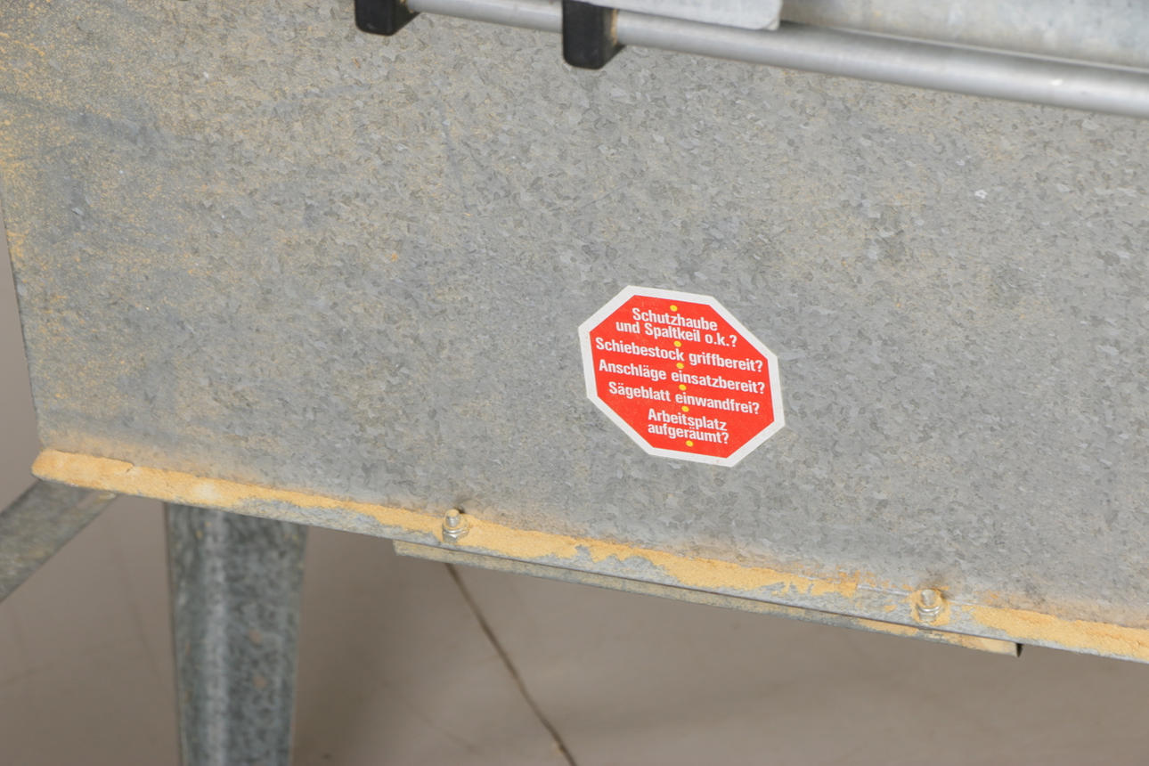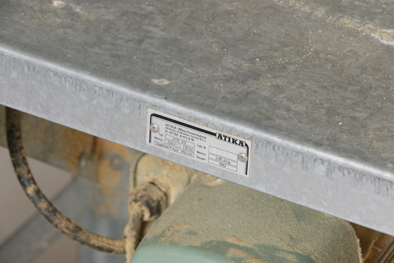 Modell ATK 315, 220 V, 50 Hz, 4,85 Ampere Sägeblatt maximaler Durchmesser 350 mm laut Etikett Länge 102, Breite 93, Höhe 110 cm.