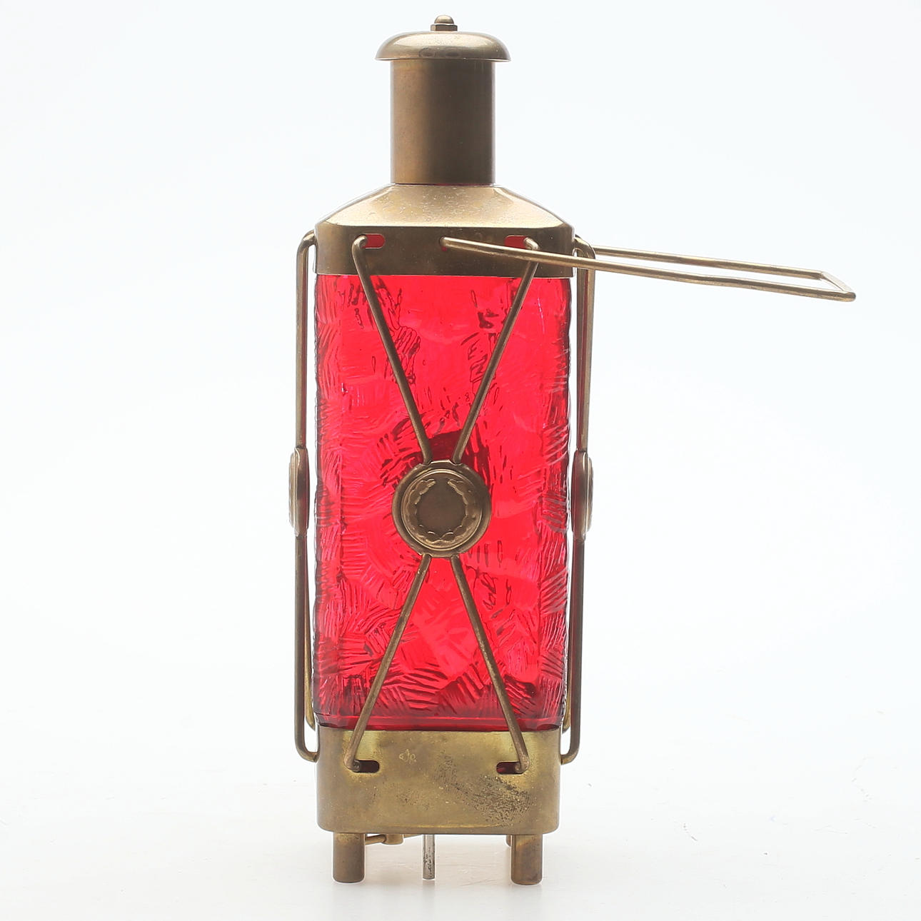 845151. LATERNE/FLASCHE, Glas/Messing, mit Spieluhr, 1900er.