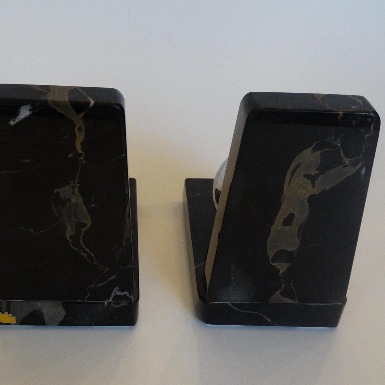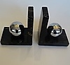 Art Deco Buchstützen aus Marmor mit Metallkugel, etwa 12 x 8 x 14 cm.