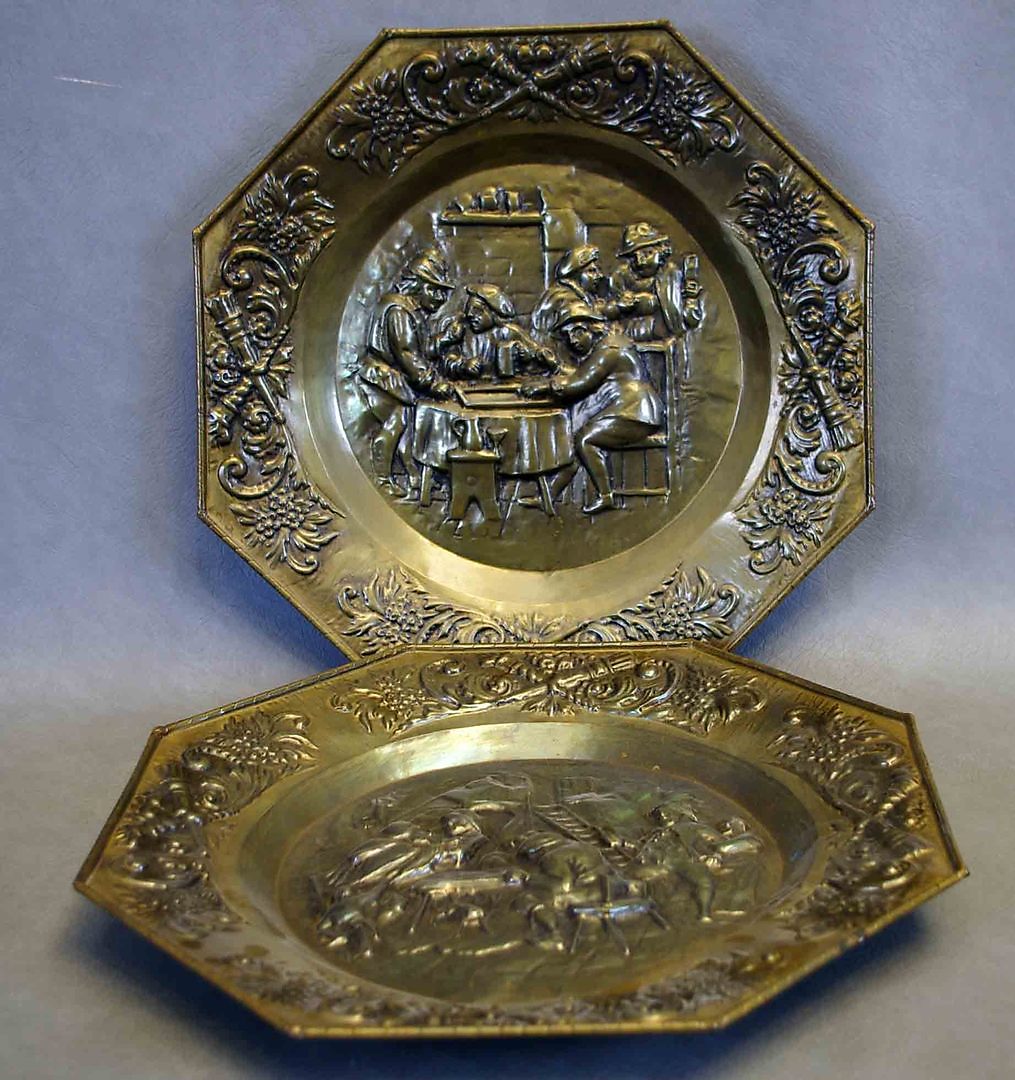 84727. WANDTELLER, 1 Paar, Messing, Jahrhundertwende 18/1900.