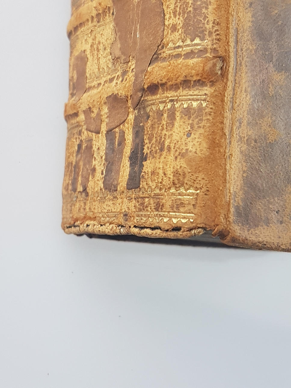 minimal fleckig, Lederband mit Rückengoldprägung, beschabt, Ecken und Kanten bestoßen, Buchrücken neu geklebt, partiell geflickt,kl.8°.