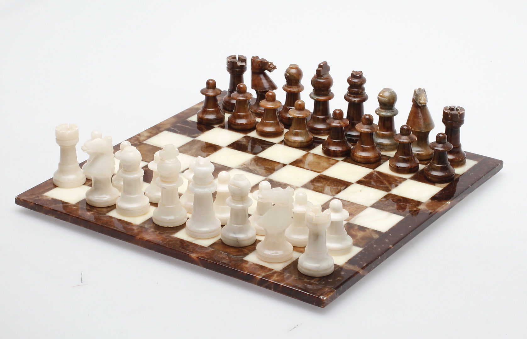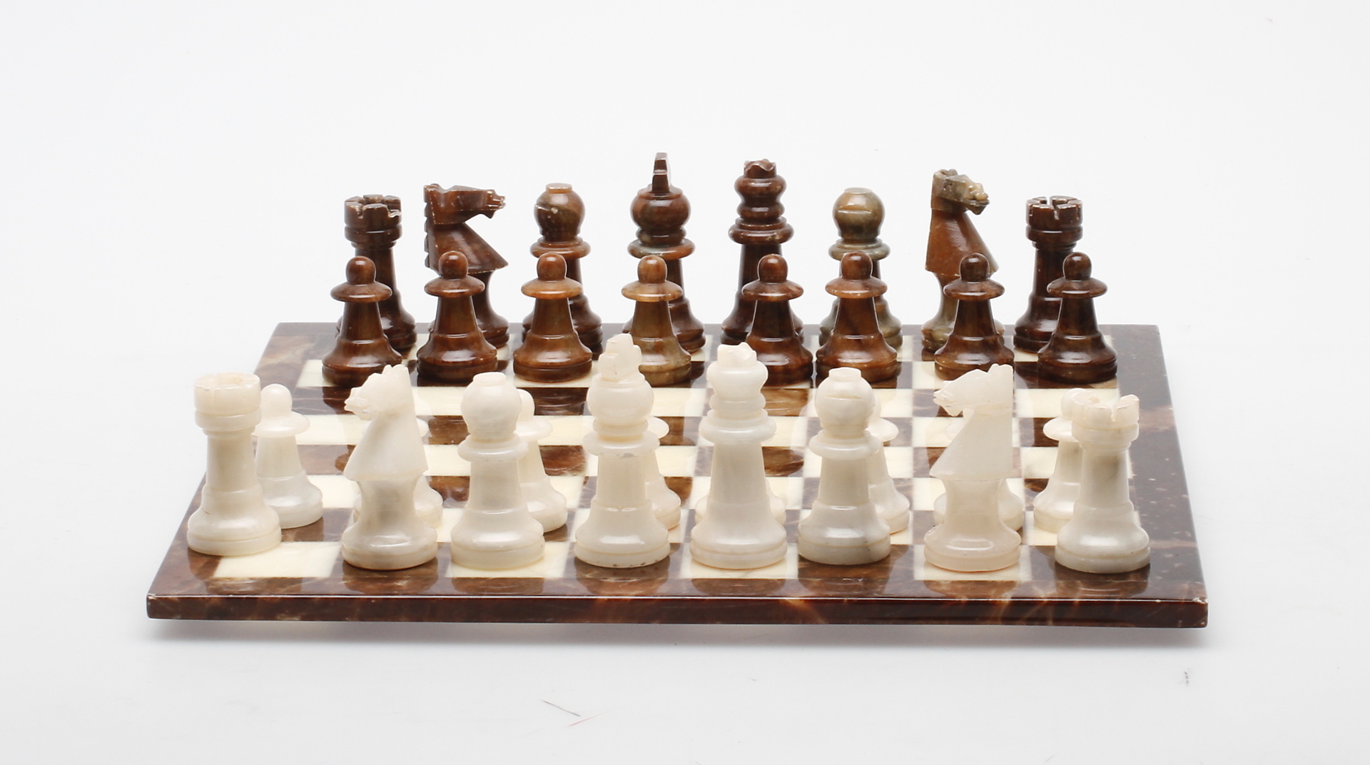 85440. SCHACHBRETT mit SCHACHFIGUREN, Alabaster.