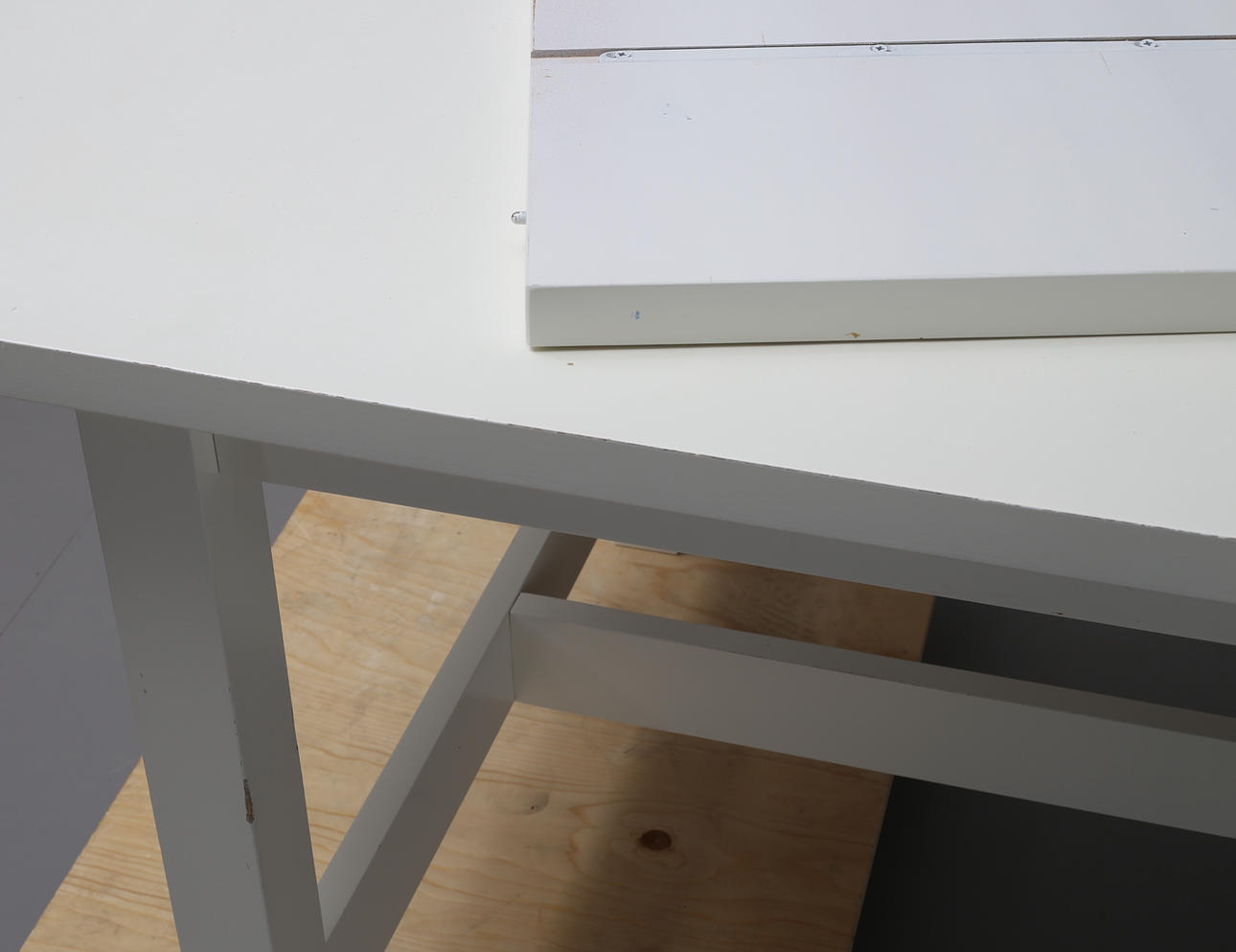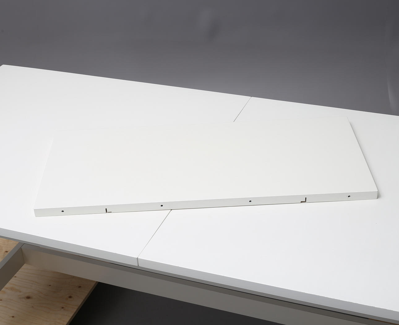 Tischhöhe 75, Länge 220, Breite 100 cm mit 1 Einsatz, maximale Länge 266 cm.