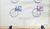 Auf Papier geklebt. Briefmarken. Zurück mit Unterschriften.