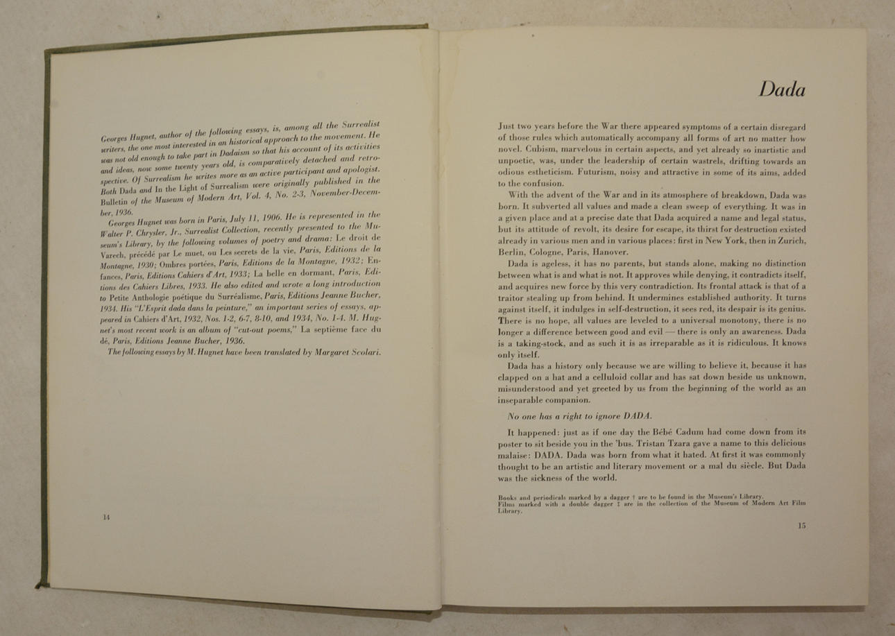 Herausgegeben von Alfred H. Barr, Jr. Essays von Georges Hugnet. New York, Museum of Modern Art, 1946. Erste Ausgabe. 271 S., fotoillustriert, teilweise farbig. Verlagsleinen ohne Schutzumschlag. 26 x 19,5 cm.