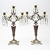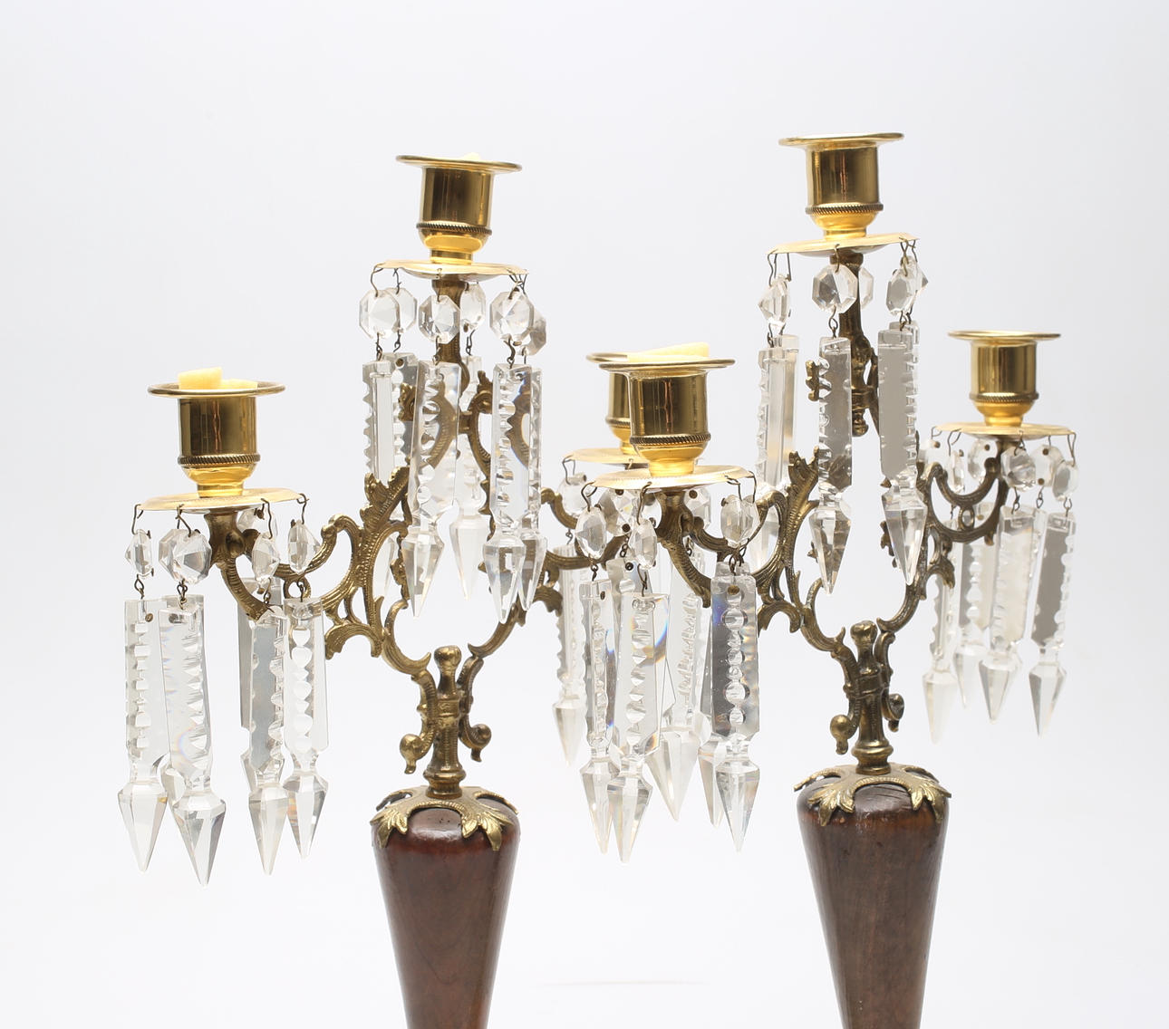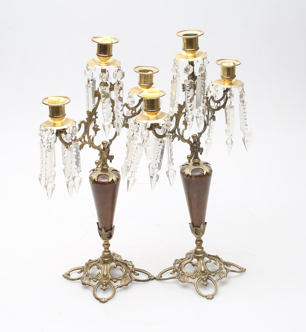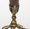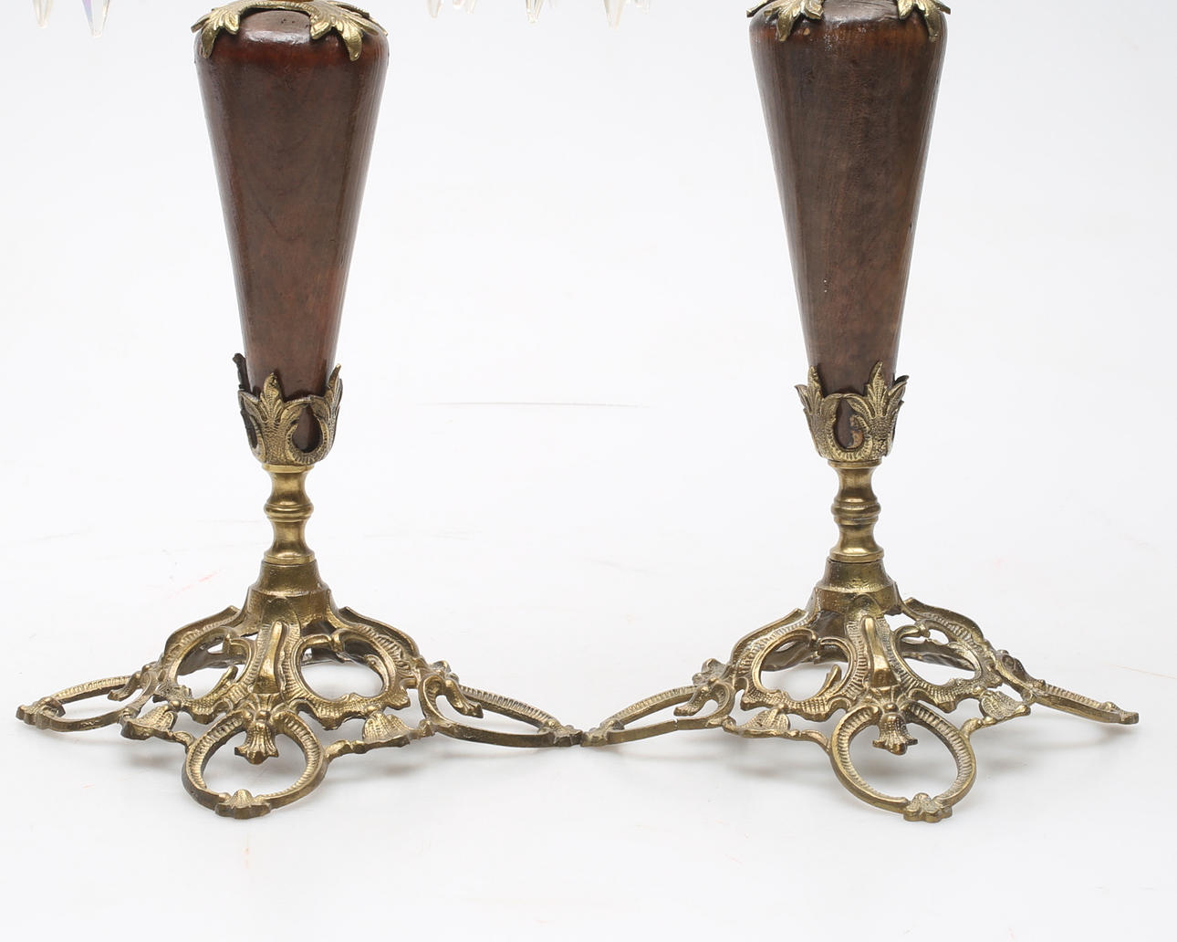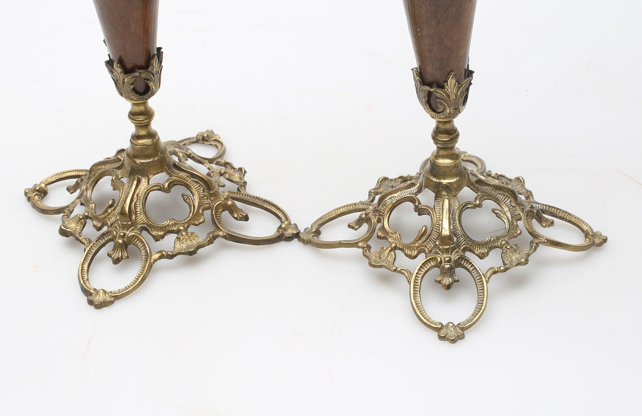 864074. KERZENHALTER, ein Paar, Messing/Holz, 1900er.