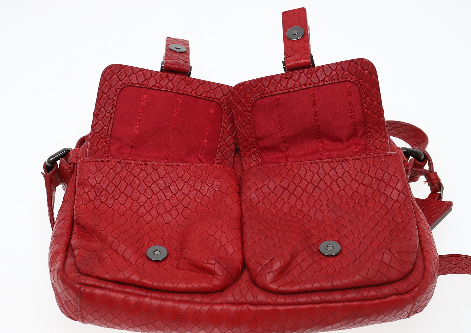 867213. MARC JACOBS, ROTE LEDER-UMHÄNGERTASCHE.