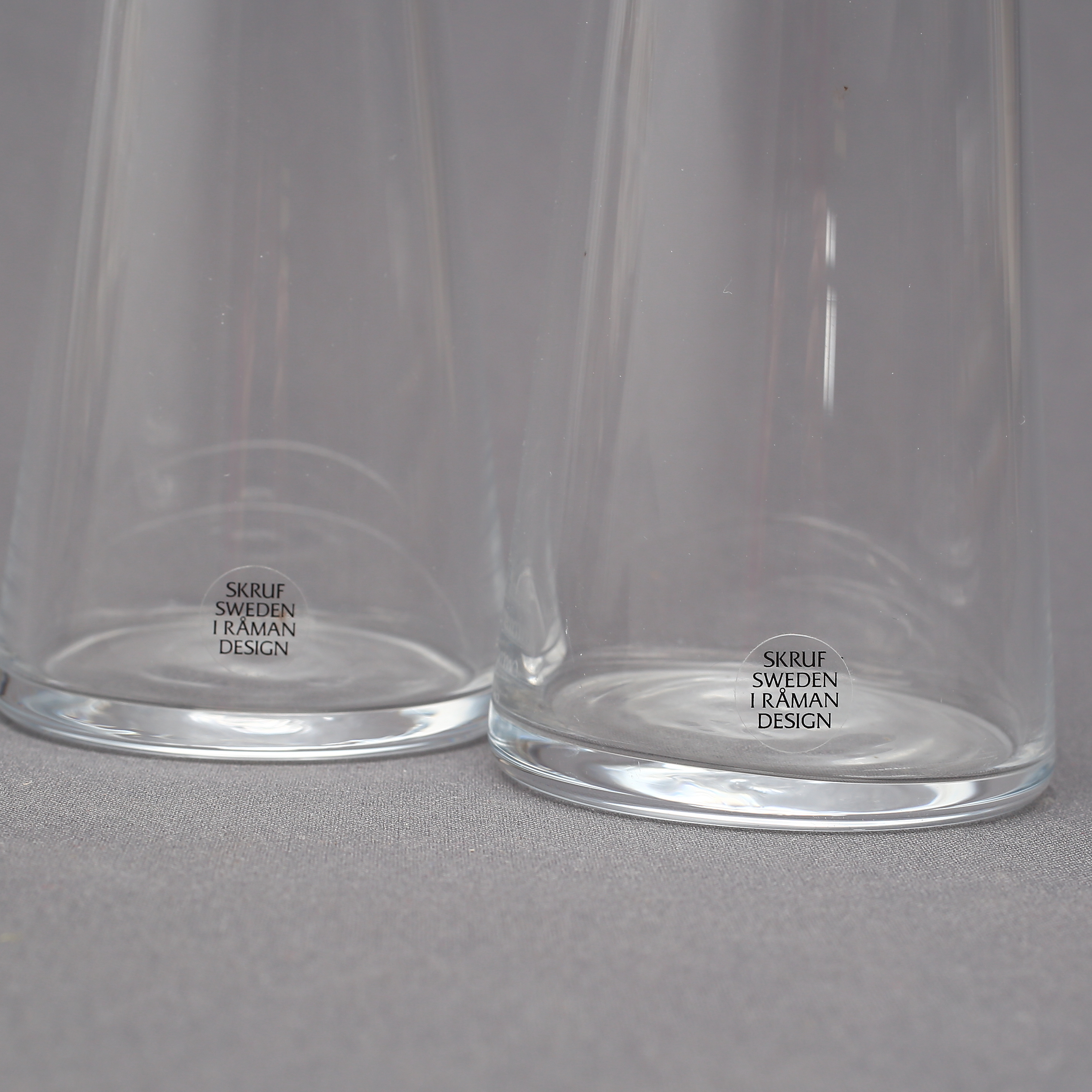868861. KARAFFEN, 2 Stück, Glas, Design Ingegerd Råman für Skruf.