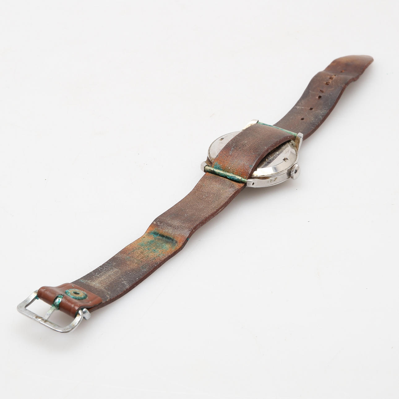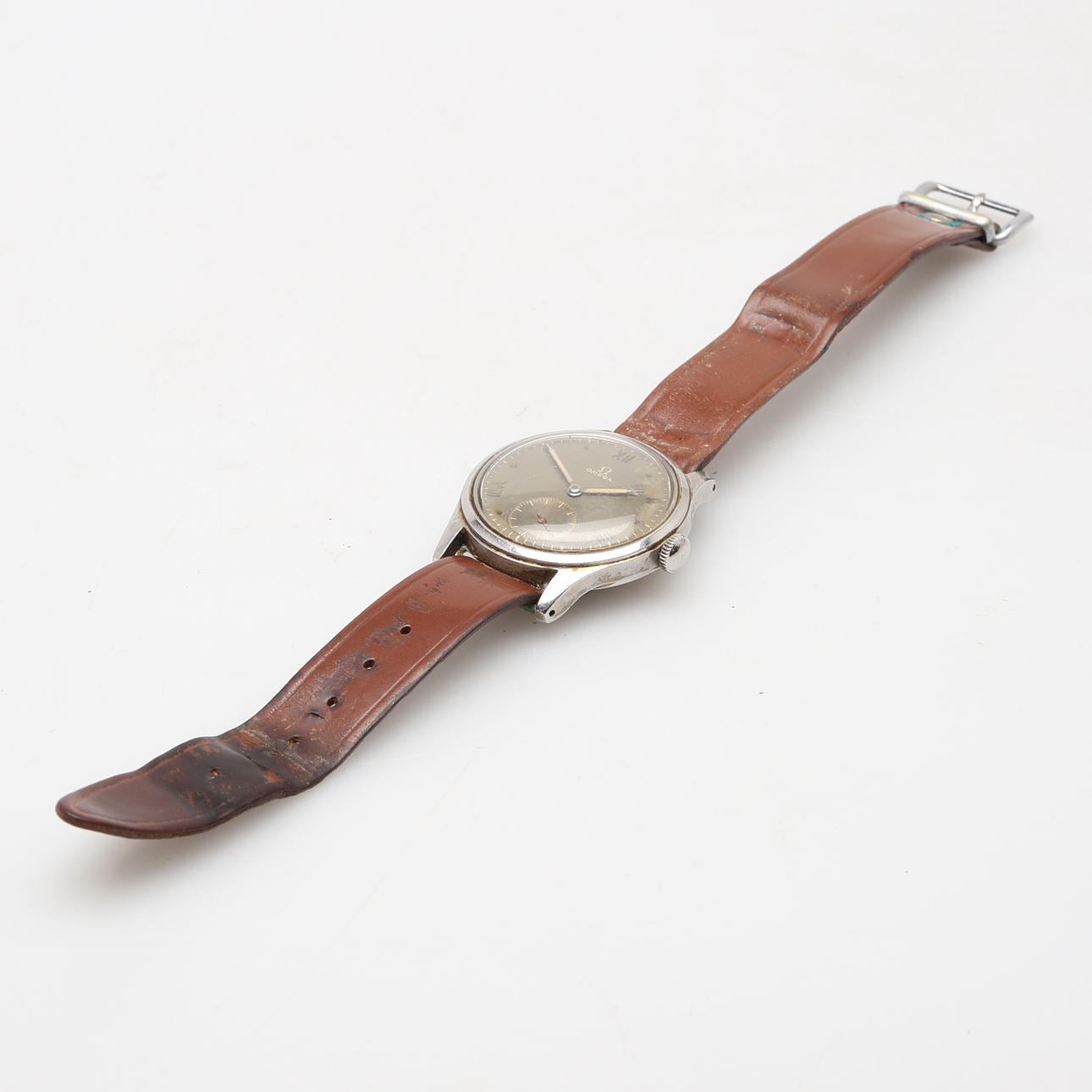 Omega Suverän, Gehäuse aus Stahl, Zifferblatt in Grünton, Durchmesser ca. 36 mm. mit Lederband.